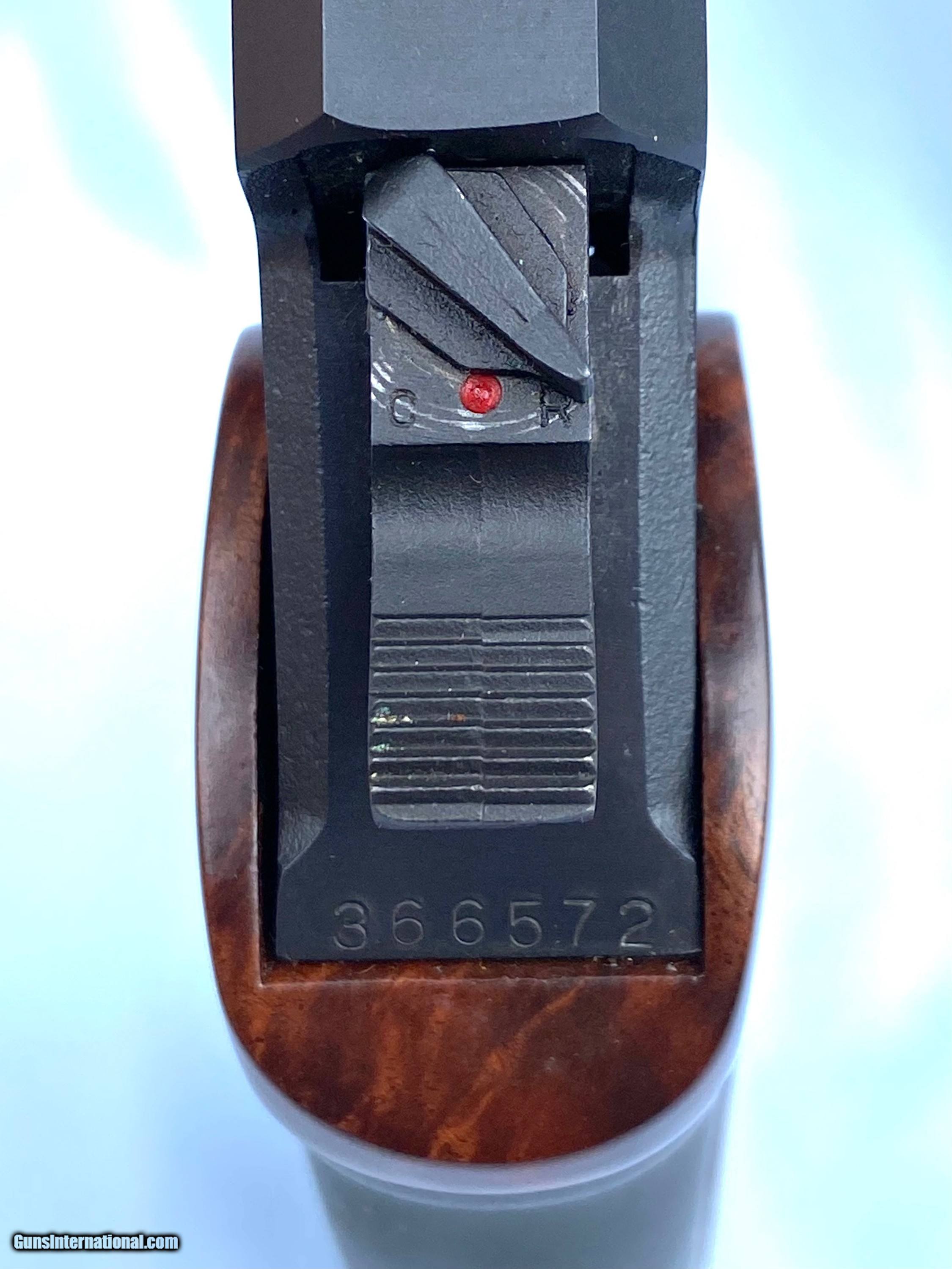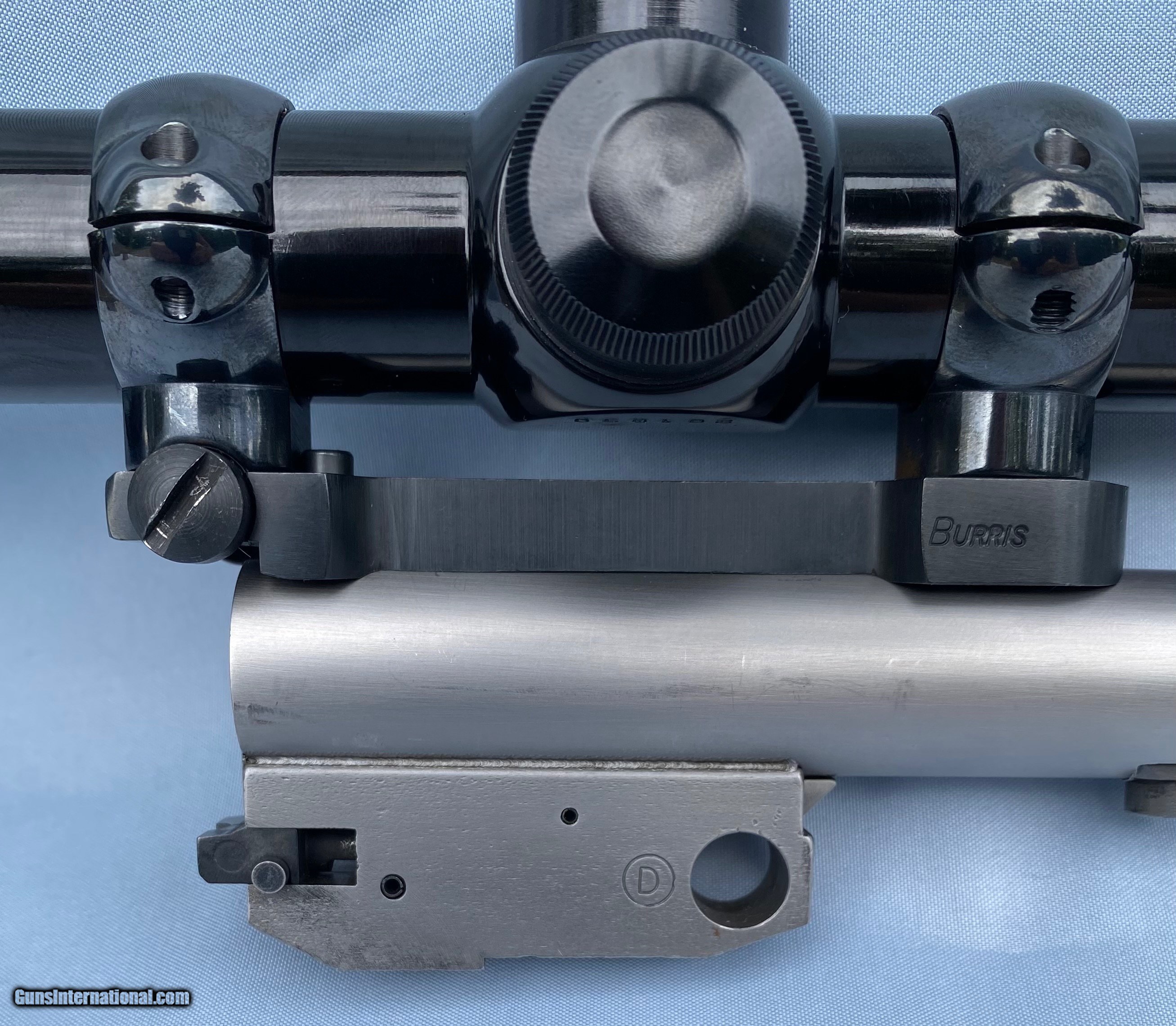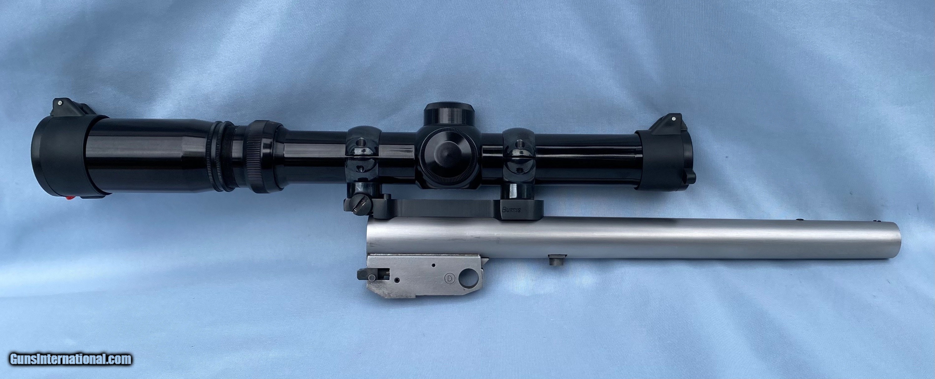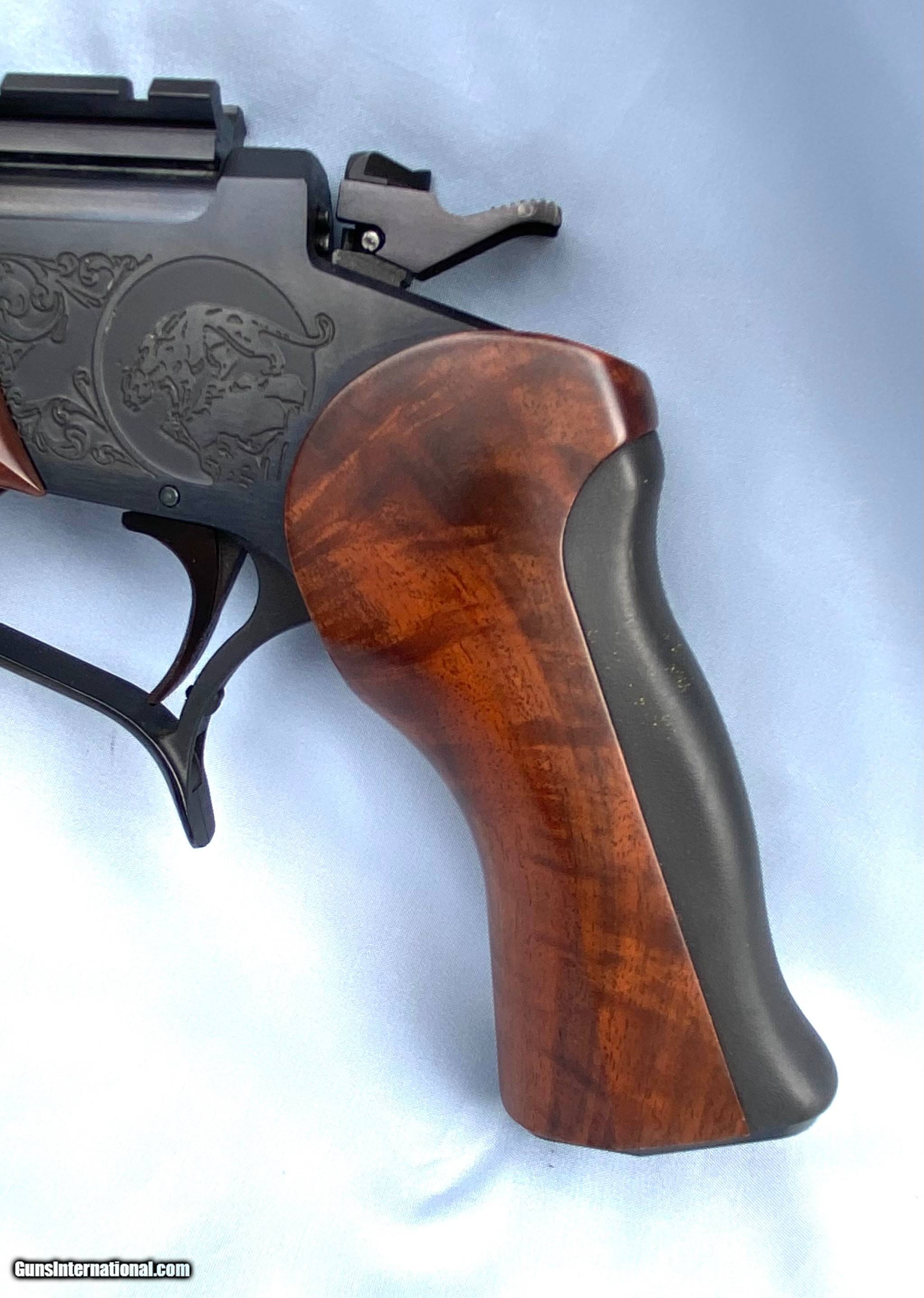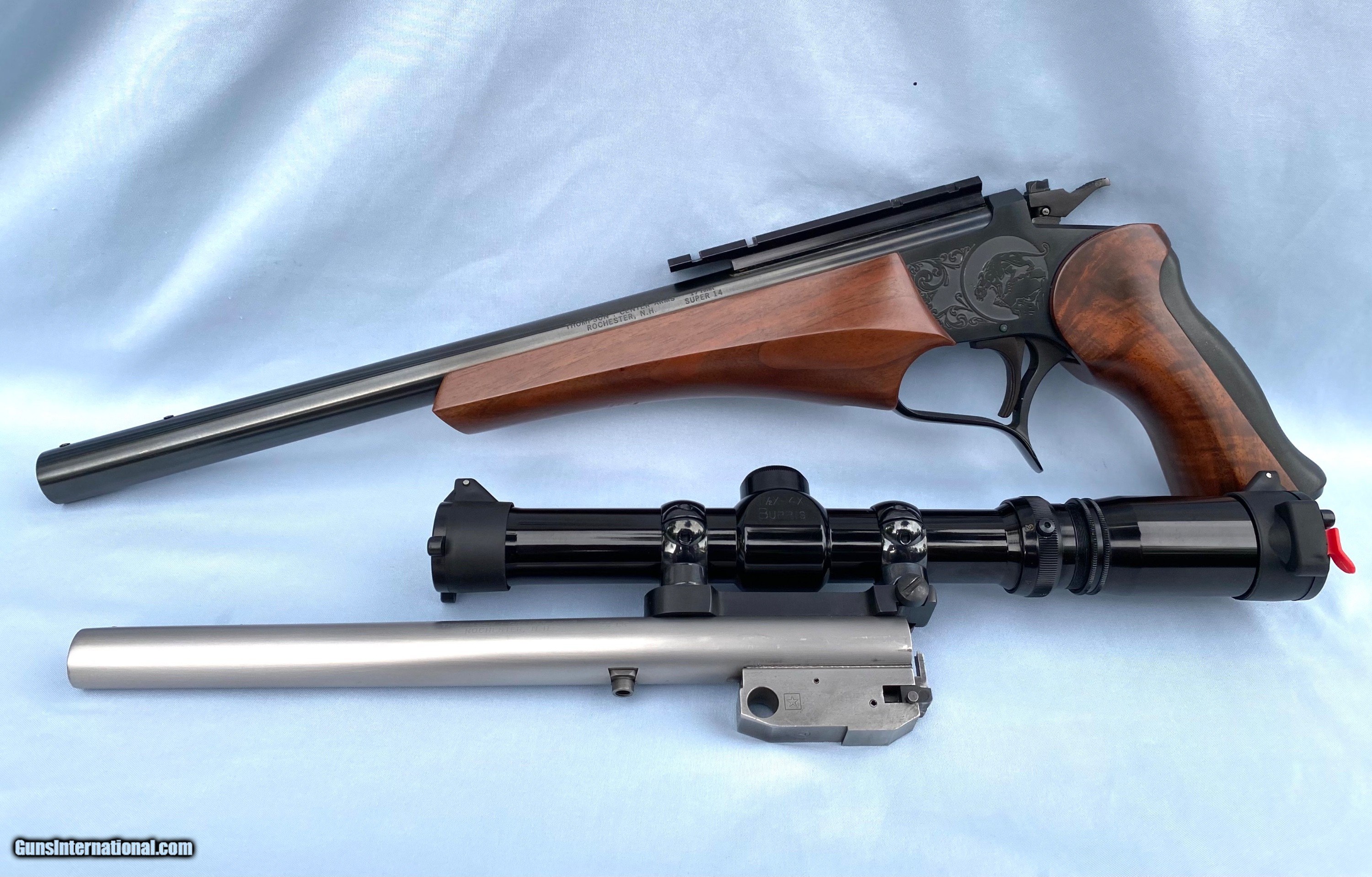 Description: Thompson Contender Super 14 in 17 HMR caliber with an extra stainless, 10", .22 LR barrel with a fine Burris 1 1/2X-4X pistol scope mounted with Burris mounts and rings. The serial number dates this Contender frame as manufactured in 1990. Being 34 years now, this beautiful pistol is in very, very nice condition. There are very few handling marks but that's to be expected...it has not been a safe queen. There is nice, pretty figure in walnut hand grip that you can admire just before you make that shot on your squirrel supper. The scope is bright and clear, both barrel bores are clean and bright. This is a fine, 90's era rimfire Contender package with a really nice Burris pistol scope of the same vintage that you can be proud to own and use. I'm asking $850 plus $25 for shipping to your FFL. SOLD Handgun Caliber: .17 HMR, .22 Long Rifle Manufacturer: Thompson Center Model: Contender Barrel Length: 14” and 10” Condition: 98-99% Metal Condition: Excellent Wood Condition: Excellent Bore Condition: Excellent Barrel Type: Rimfire Action: Breakdown Manufacture Date: 1990 |