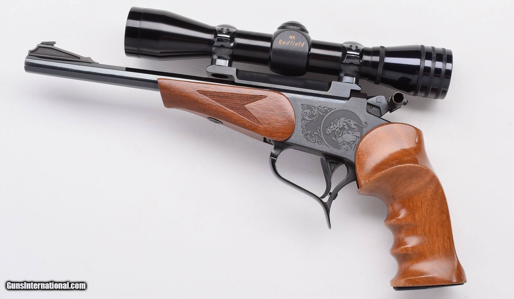 Description: Extremely High Condition pre-owned Thompson Center Contender in .221 Remington Fireball. Includes Redfield 4X Scope. Excellent bore presents bright and sharp. Bluing remains in very good order throughout exhibiting a well-preserved finish with minimal wear with only light signs of honest use commensurate with age and handling. Mechanism is crisp and appears to be mechanically sound. SOLD Handgun Caliber: .221 Remington Fireball Manufacturer: Thompson Center Model: Contender Caliber Info: .221 Remington Fireball Metal Condition: Excellent Wood Condition: Excellent Bore Condition: Bright and Sharp Triggers: Single Stage Finish: High Polish Blue Sights: Redfield 4X Scope Item Location: Buda, TX |