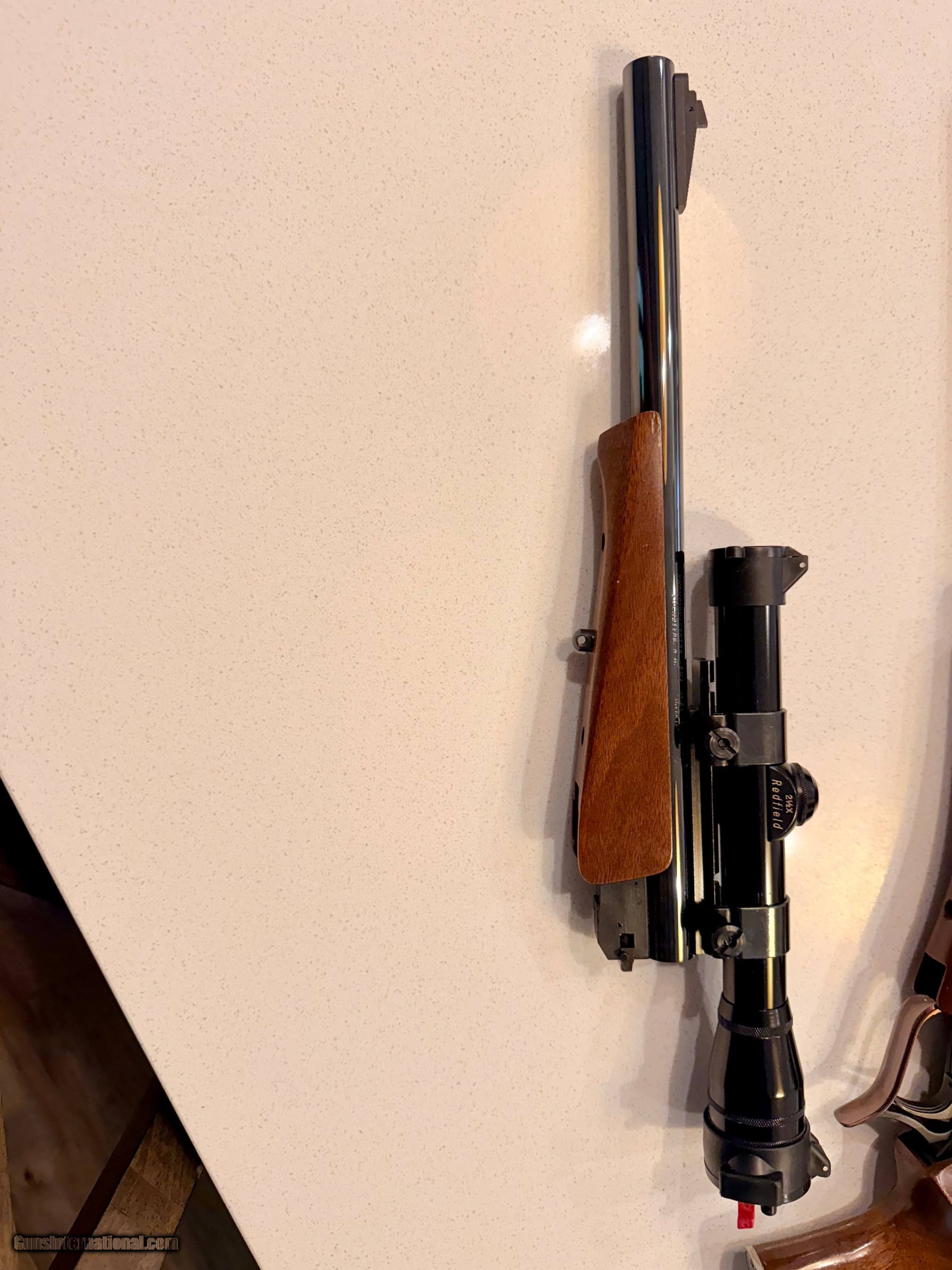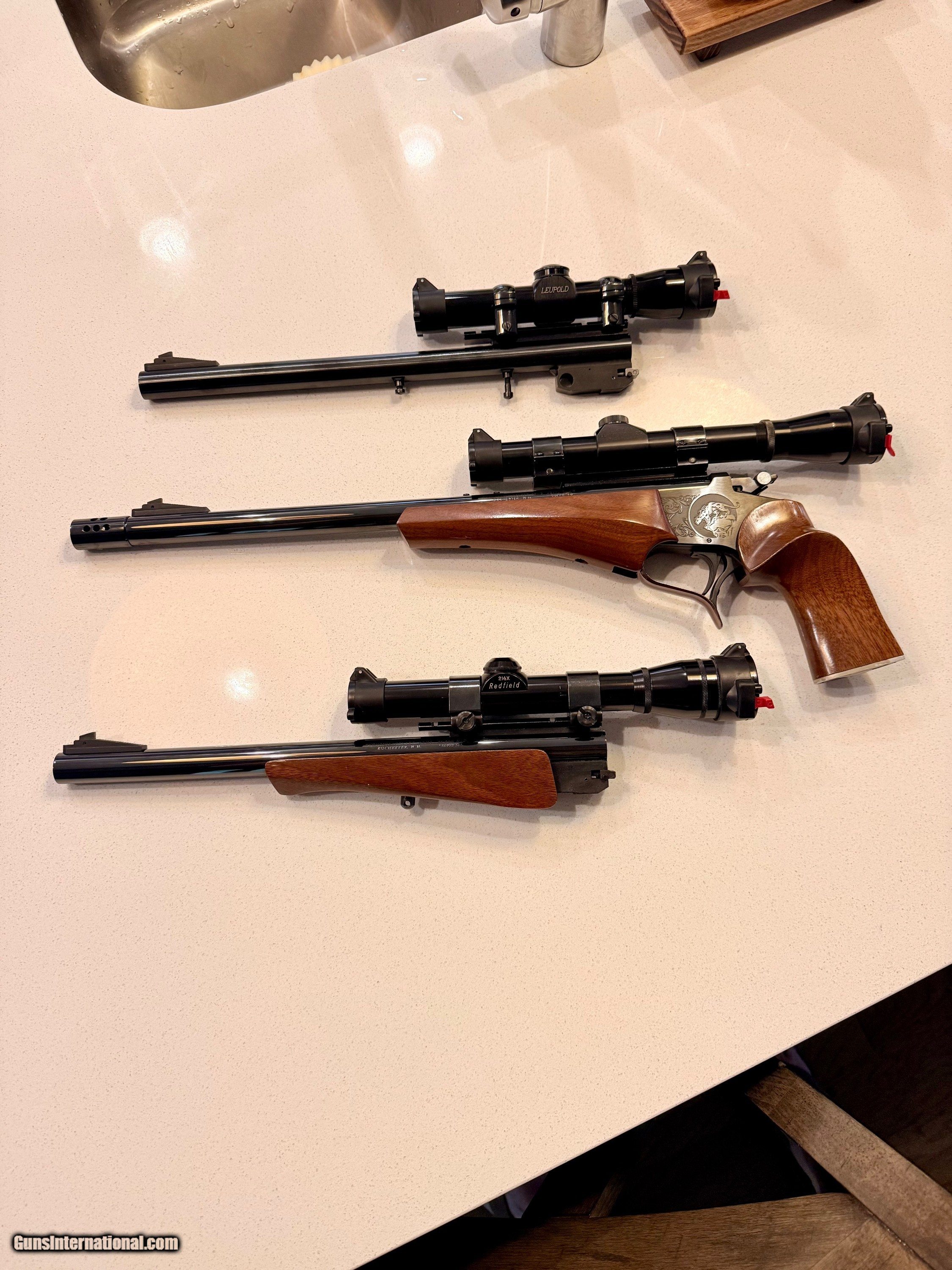 Description: Beautiful Thompson Center Contender 3 barrel set with 3 scopes. Any questions feel free to ask. Wooden grips and two forends come with the set. Calibers and barrel lengths: 45-70 Gov 16" ported .44 Mag 14" .223 14" Pistol Scopes: Leupold Lyman Redfield SOLD Rifle Caliber: .223 Remington, .44 Magnum, .45-70 Government |