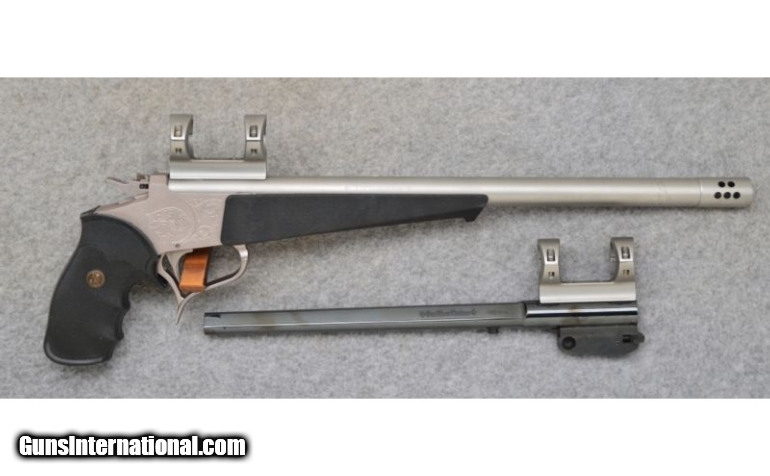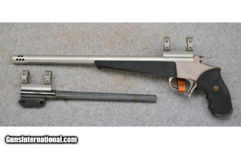 Description: Excellent condition overall. Stainless Steel T/C custom shop .35 Remington barrel with a blued Fox River custom barrel in .223 Remington. SOLD Caliber Info: .35 Remington and .223 Remington Metal Condition: Excellent Bore Condition: Excellent Barrels: 16" overll with Brake Stainless Barrel, Stock: Pachmayr Rubber Grips Fore End: Black Synthetic Weight: 4 lbs. 6 ozs. Item Location: Hamburg, PA |