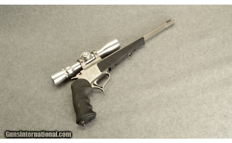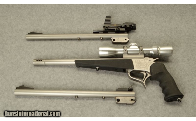 Description: 35 Rem Barrel has Bushnell 2-6X35 Scope Mounted and Integral Muzzle Brake..375 Win Barrel has Open Sight with Windage Adjustment..223 Barrel has Bec Inc Red Dot Sight Mounted SOLD Manufacturer: 1993 Caliber Info: .223 / 35 Rem / .375 Win Metal Condition: Excellent Bore Condition: Excellent Barrels: All Barrels are 14 inch Single Shot Triggers: Factory Stock: Synthetic Fore End: Synthetic Weight: 4 lbs. 4 ozs (35 Rem Barrel with Scope) Item Location: Garner, NC |