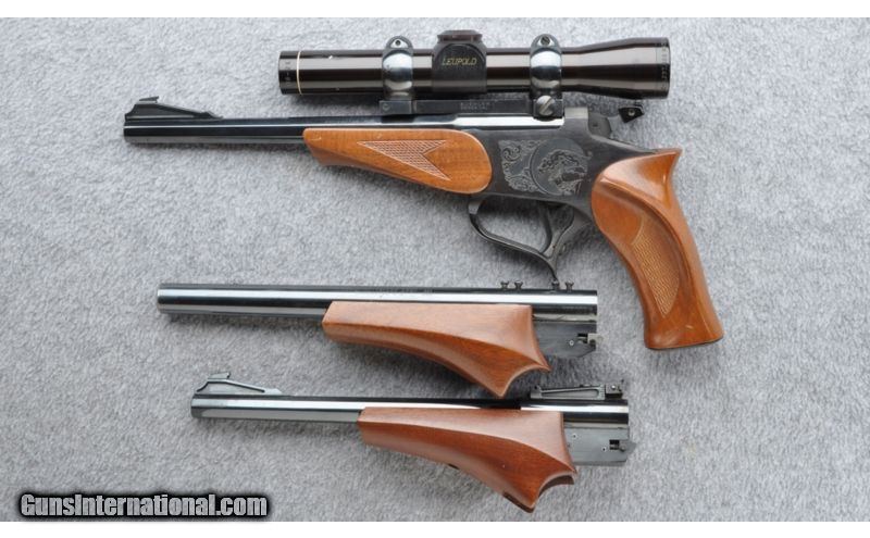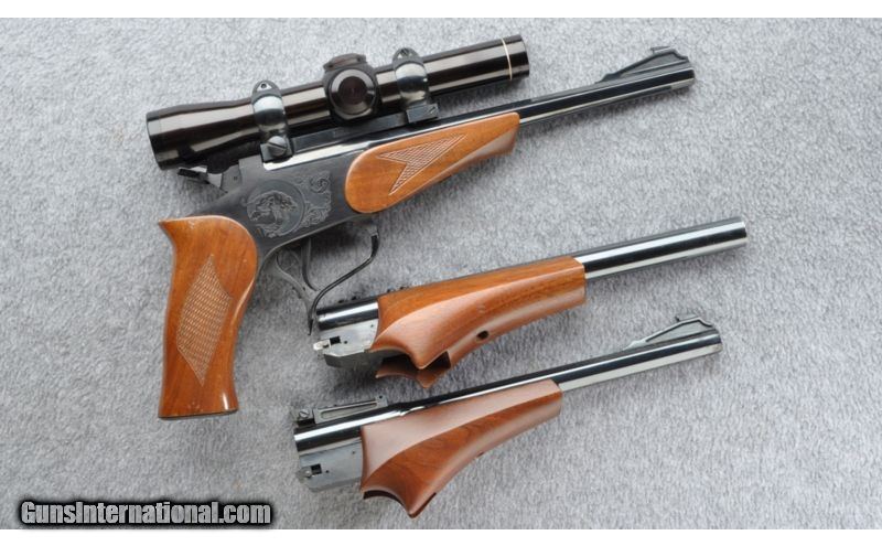 Description: SOLD Caliber Info: .222 Remington, .223 Remington & .30-30 Winchester Metal Condition: The frame and barrels are in very good condition however, the .223 barrel shows some blue wear at the muzzle & the .30-30 barrel also shows wear at the muzzle Wood Condition: The grip and fore ends show light use marks Bore Condition: All are sharp and bright Barrels: 10 Triggers: Single Action Stock: Checkered hand grip and fore end Weight: 52 oz as pictured Sights: The .222 Remington barrel is fitted with a Leupold M8 2X Extended Eye Relief Scope in Buehler rings & mount Extras: Hard case with extra grip and fore end plus rear sight for the .223 barrel Item Location: Grand Junction, CO |