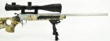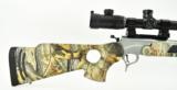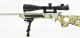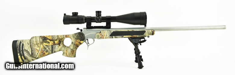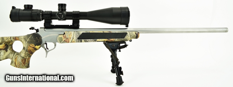 Description: Thompson Center Arms Encore .243 Win caliber rifle. Stainless steel 2-barrel set with a .243 barrel and a .300 Win Magnum barrel, each fluted. Has a camo thumbhole stock with recoil reducer and bipod. The .243 barrel has a Schonfeld 6X24 scope and the .300 barrel has an Explore 4X16 scope. A nice set up in excellent condition with case.