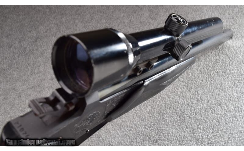 Description: This Thompson Center Arms Super 14 remains in excellent overall condition showing only light use. Original front sight has been removed and shows traces of fixative still left. Drilled holes remain. There are a few small areas of light oxidation in places while blue is still good. Pachmayr checkered rubber grips and forend are clean with no marks. Bore is bright and excellent. Complete with Bushnell Magnum Phantom 2.5X scope! Very nice gun. No box. .223 Remington SOLD Metal Condition: Very Good Bore Condition: Excellent Barrels: 14 Triggers: Factory Butt Pad: Pachmayr Presentation Checkered Black Rubber Grips and Pachmayr Checkered Black Rubber Forend Weight: 76oz Sights: Bushnell Magnum Phantom 2.5X with Fine Crosshair Reticle Item Location: Wheeling |