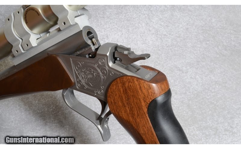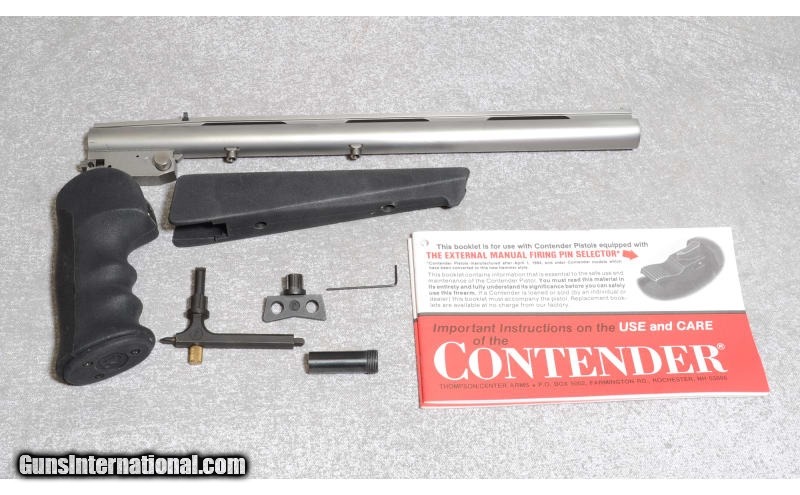 Description: The Thompson/Center Contender is a break-action single-shot pistol or rifle that was introduced in 1967 by Thompson/Center Arms. It can be chambered in cartridges from .17 Bumble Bee to .45-70 Government. This gun has a .223 rifle barrel and a 410 Gauge shotgun barrel. Warren Center, working in his basement shop in the 1960s, developed a unique, break-action, single-shot pistol. In 1965, Center joined the K.W. Thompson Tool Company and they introduced this design as the Thompson-Center Contender in 1967. Although they cost more than some hunting revolvers, the flexibility of being able to shoot multiple calibers by simply changing the barrel and sights and its higher accuracy made it popular with handgun hunters .223 Remington SOLD Chambers: Break Action Metal Condition: Excellent Condition Wood Condition: Excellent Bore Condition: Excellent Barrels: 14" .223 Remington and 14" 410 Gauge Shotgun Triggers: The original Contender designs have an adjustable trigger Fore End: Walnut and Extra Composite Stock and Forestock Weight: 4 3/4 lbs, Sights: TC 2.5-7 Scope Item Location: Springfield, MO |