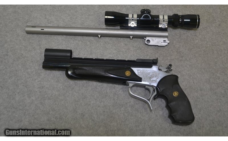 Description: This Thompson Center Arms Contender is in excellent overall condition showing only light use. Forend is Checkered Black Rubber and remains excellent. Blue and bore on both sets of barrels remains excellent. The 30 Herrett barrel is equipped with Thompson Center 2.5 X 7 scope. .22 Long Rifle SOLD Chambers: 1 Metal Condition: "very good, minor wear Bore Condition: excellent and excellent Barrels: 10-inch 22 long rifle and 14-inch 30 Herrett Triggers: Factory trigger Fore End: Rubber fore end Butt Pad: Rubber hand grip Weight: 4 lbs Sights: "Thompson center arms 2.5x7 on the 30 Herrett barrel, iron sights on the 22 lr Item Location: Mitchell, SD |