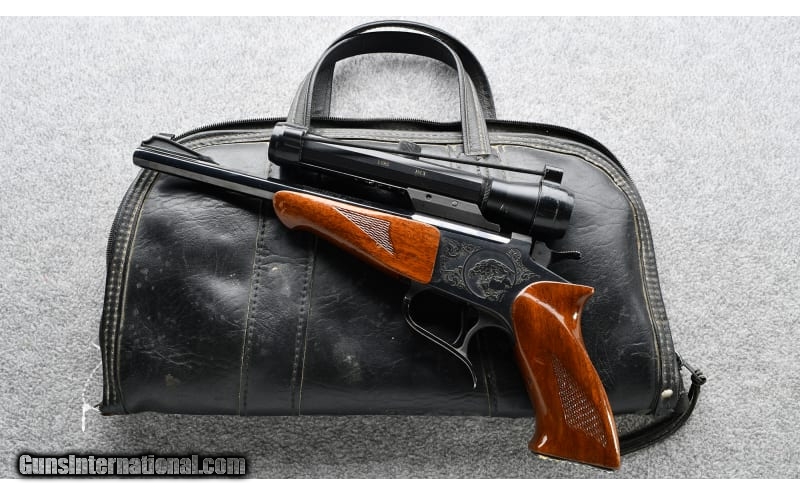 Description: The Thompson/Center Contender is a break-action single-shot pistol or rifle that was introduced in 1967. This one was made in 1969 .222 Remington SOLD Chambers: .222 Remington and .44 Remington Magnum in a break action single-shot Pistol Metal Condition: "Very good, deep blue with floral and Mountain Lion scene on the receiver Wood Condition: "Good, a few small marks on the fore end and grip Bore Condition: Very good on both barrels Barrels: 10" Octagonal drilled and tapped for scope mount Triggers: Single action Weight: 48 OZ Sights: "Ramped blade front and a TC Lobo 1 1/2X scope mounted on the .222 barrel, no rear sight provided Item Location: Grand Junction, CO |