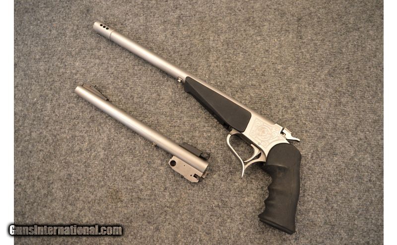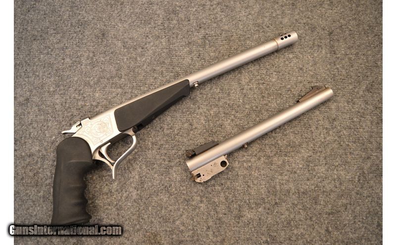 Description: This Thompson Center is ready to go hunting with both a .30-30 barrel and a .22 Hornet barrel. .30-30 Winchester SOLD Metal Condition: "Good, minor rust spotting on both barrels Bore Condition: Very good Barrels: ".30-30 Winchester Super 14 barrel with muzzle brake, 10 "" .22 Hornet barrel with open sights Weight: 3 Lbs. 5 Ozs. Item Location: Albuquerque, NM |