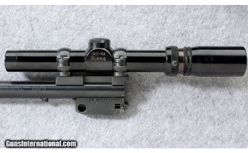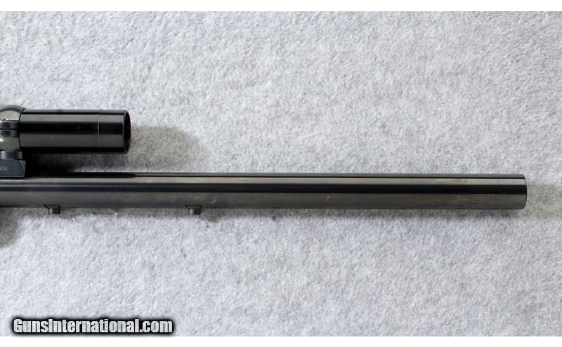 Description: The Thompson Center Arms Contender is a favorite with handgun hunters. Barrels can be easily changed to give you handgun that can cover a wide range of calibers for game and targets. Manufactured 1984 .45-70 Government SOLD Metal Condition: Good with scratches and nicks Bore Condition: Excellent Barrels: 14 inch barrels Weight: 75 Oz. Sights: Bausch & Lomb 2-6x and Burris 1.5-4x scopes Item Location: Lehi, UT |