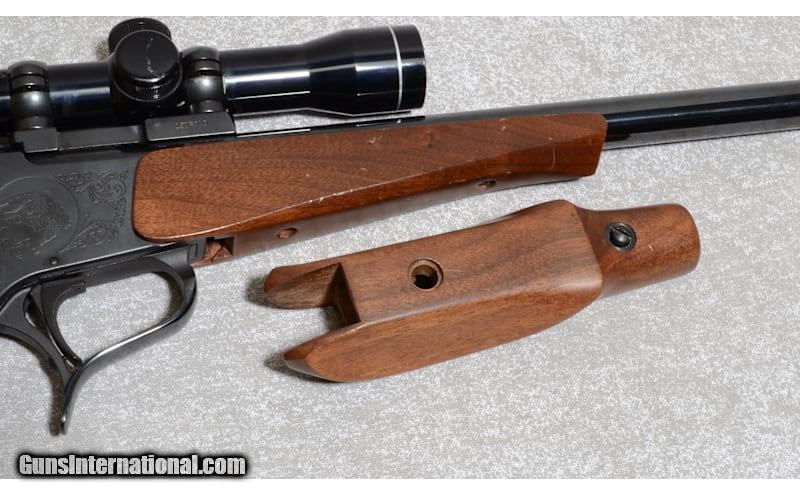 Description: Warren Center, working in his basement shop in the 1960s, developed a unique, break-action, single-shot pistol. In 1965, Center joined the K.W. Thompson Tool Company and they introduced this design as the Thompson-Center Contender in 1967. Although they cost more than some hunting revolvers, the flexibility of being able to shoot multiple calibers by simply changing the barrel and sights and its higher accuracy made it popular with handgun hunters. .45-70 Government SOLD Chambers: Single Shot Break Action Metal Condition: Very Good Wood Condition: Very Good Stained Walnut Bore Condition: Very Good Barrels: 14 Inch Barrel Triggers: Factory Fore End: Stained Walnut Forearm Weight: 4 1/4 lbs. Sights: Tasco 4x28 Scope Item Location: Tulalip, WA |