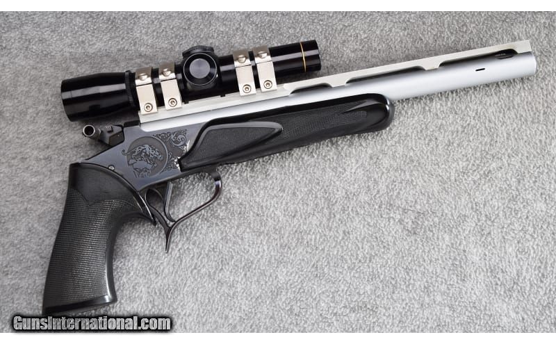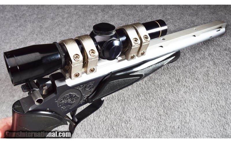 Description: This Thompson Center features a custom SSK Industries 12 1/2" ported barrel with a full length scope rail with picatinny mounts and hammer extender. Gun shows only some light wear on blued part of frame. Lockup is extremely tight. Complete with Leupold E.E.R. scope with Duplex Reticle in 4 scope rings. No box. .45-70 Government SOLD Metal Condition: Excellent Bore Condition: Excellent Barrels: 12 1/2" Ported Triggers: Factory Fore End: Pachmayr Checkered Black Rubber Grips & Forend Weight: 70 oz. Sights: Leupold Extended Eye Relief with Duplex Reticle Item Location: Independence, MO |