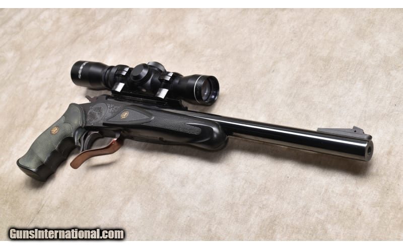 Description: This Thompson Center chambered in .30-30 Winchester is in overall very good to excellent condition and comes with extra .44 Magnum barrel. .30-30 Winchester SOLD Chambers: 1 Round. Metal Condition: Very good to excellent. See photos for detail. Wood Condition: Excellent with minor handle marks. See photos for detail. Bore Condition: Both barrels are in very good to excellent condition with good rifling. Barrels: 14 Inches. Triggers: Factory single action. Fore End: Black hard rubber. Butt Pad: Black hard rubber. Weight: 5lbs Sights: Tasco 1.25-4 optic on .30-30 barrel. Front ramp with adjustable rear notch on .44 Magnum barrel. All used optics are sold "As is" without warranty. Item Location: Rogers |