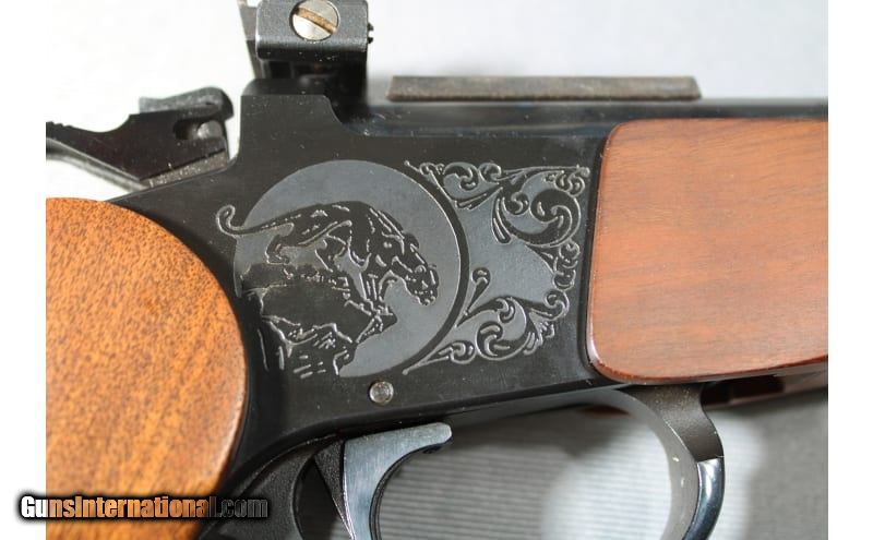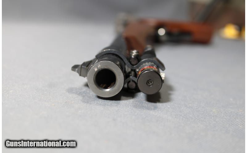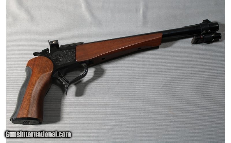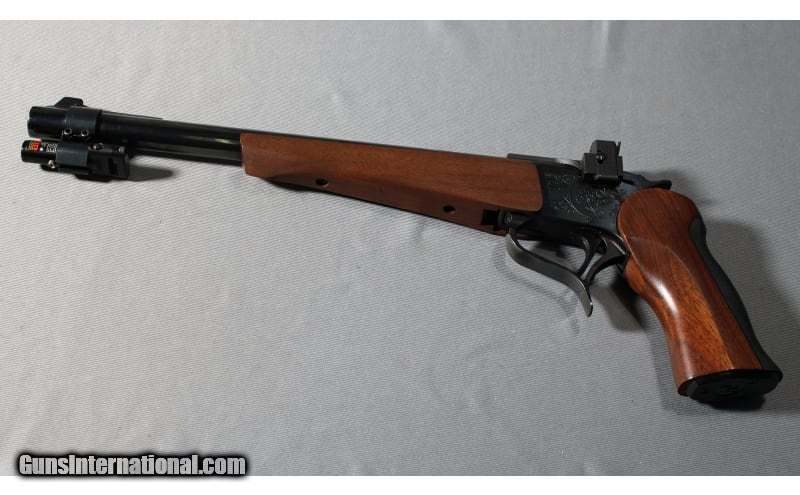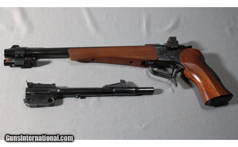 Description: Thompson Center single shot handgun comes with two barrels. .44 MAG 14" barrel and .45 Colt 10" barrel. 14" barrel also has a red laser attached. Finish is good showing little wear. .44 Magnum SOLD Metal Condition: very good Wood Condition: very good Bore Condition: bright Barrels: 14" barrel for .44 MAG; 10" barrel for .45 Colt Fore End: wood Weight: 3 lb 8 oz Sights: "blade front sights and adjustable rear target sights on each barrel, red laser attached to .44 MAG barrel Item Location: Council Bluffs, IA |