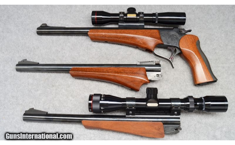Description: SOLD Caliber Info: .17 Rem./.223 Rem./.30-30 Win. Metal Condition: Very good with scratches. Wood Condition: Good with handling marks. Bore Condition: All 3 barrels and shiny with good rifling. Barrels: Each barrel is 14". Stock: Smooth walnut. Fore End: Smooth walnut. Weight: 4-lbs., 8-ozs. Sights: .30-30 barrel: 4x32 Simmons Scope. .223 barrel: 2-6x32 Simmons Scope. .17 barrel: front blade, adjustable rear blade. Item Location: Fort Worth, TX |