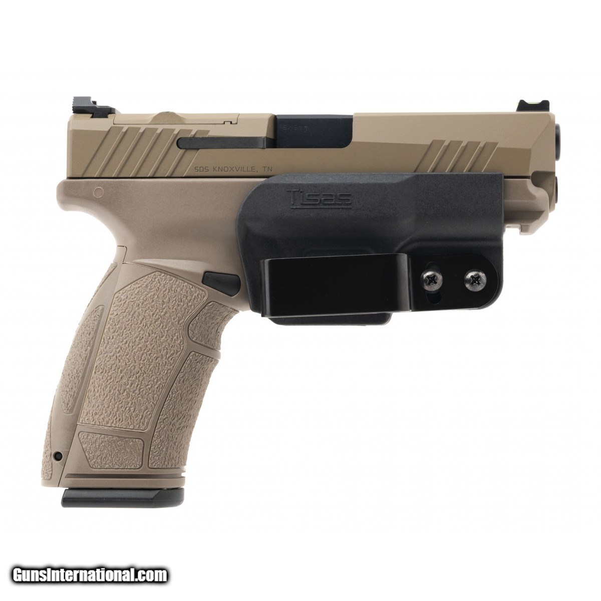 Compact polymer frame pistol with a 4.11"" barrel, an optics cut slide, fiber optic sights and a holster. In a FDE finish. NEW. UPC: 713135219345.