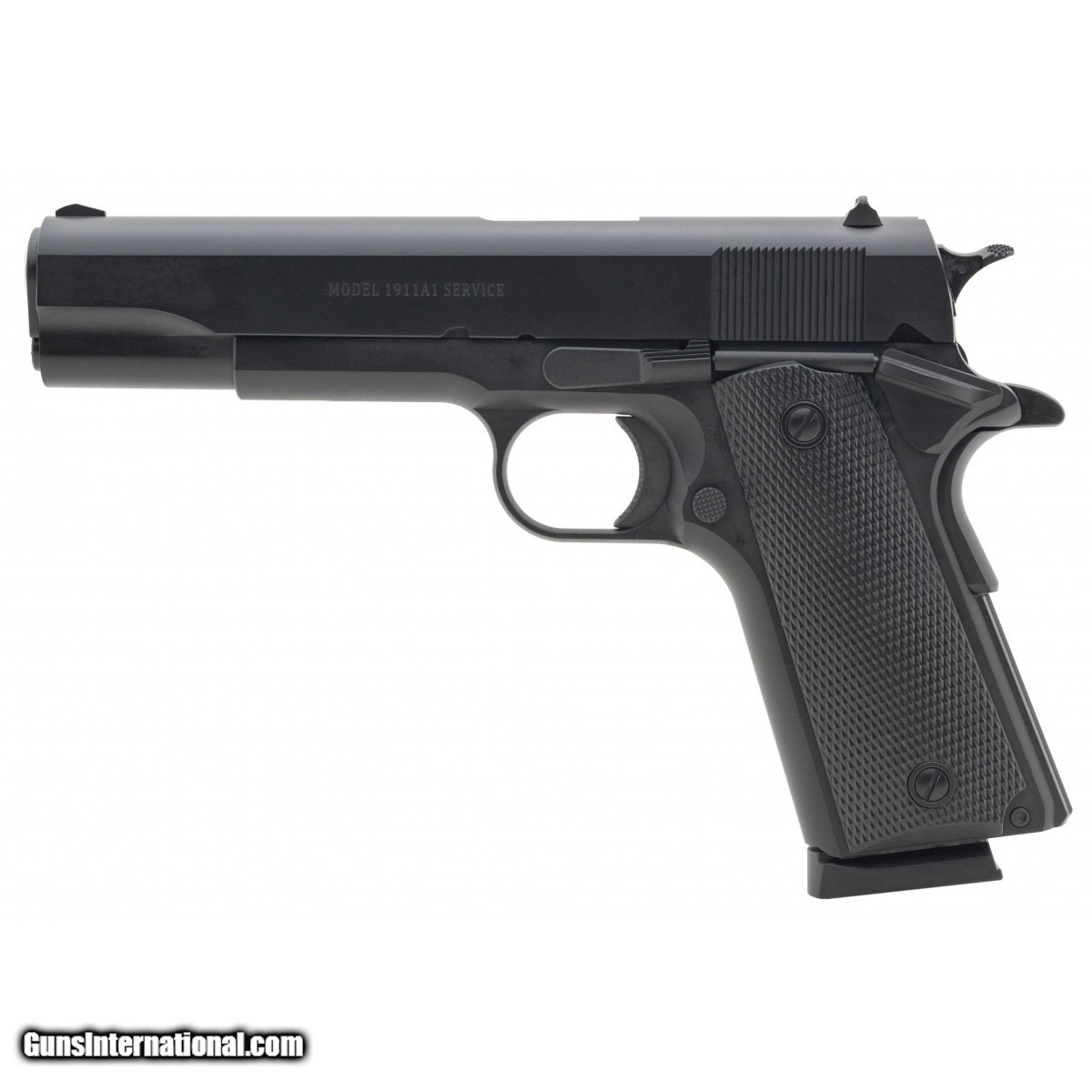 Full size 5"" service pistol in a parkerized black finish with a manual thumb safety, semi-automatic, single action only with fixed sights. NEW. UPC:713135218539.