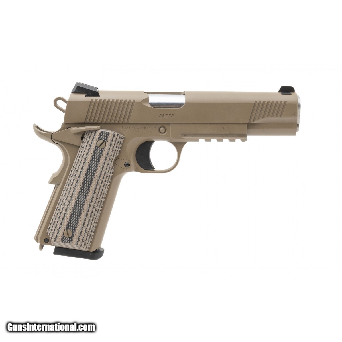 Semi-auto 1911 with a 5"" barrel, chambered in .45 ACP with an FDE Finish, G10 grips, Novak-style sights and accessory rail. NEW. UPC: 723551442852