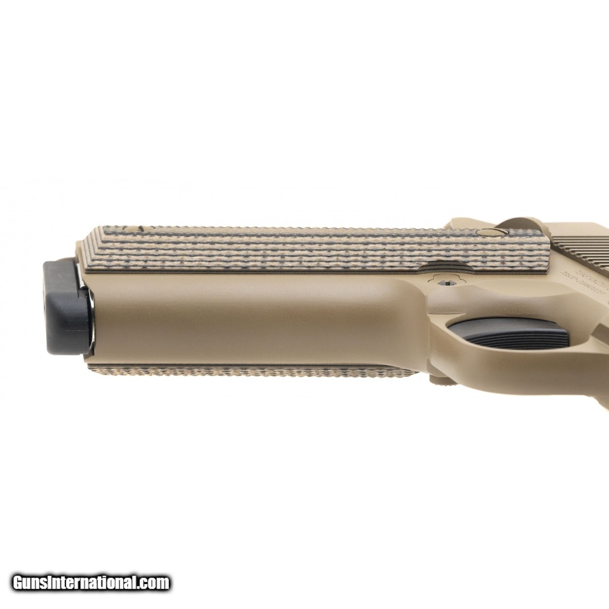 SN: T0620-23AK00231. Modern production. .45ACP with a 5" barrel. Bore is in excellent condition. Full size steel frame handgun. Metal is excellent with FDE finish. G10 grips are excellent. Has 3 dot sights and accessory rail. Overall condition is excellent.