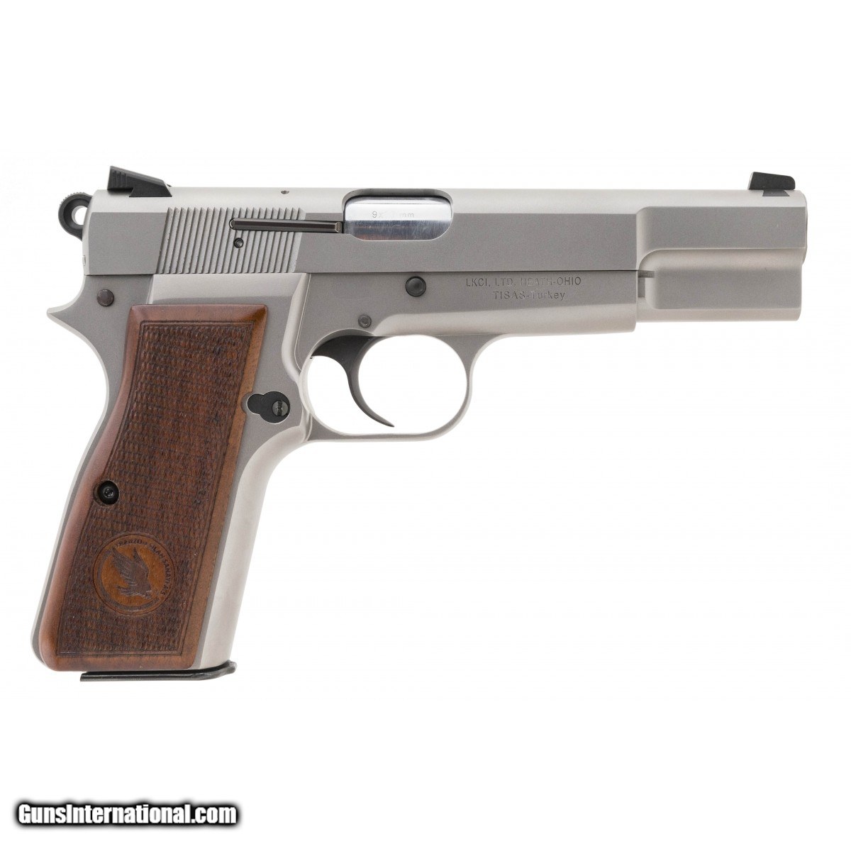 Description: " SN: T0620-18BY00656. Stainless Hi-power pattern pistol with Cylinder & Slide ""Package 2"" custom work. Overall excellent condition. Comes with box and extra magazine. SOLD |
