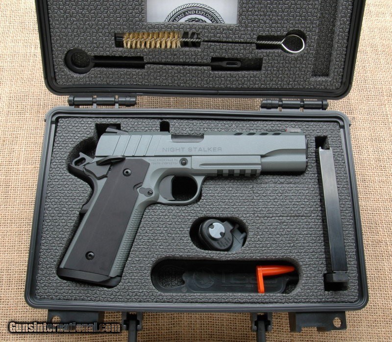 Description: Chambered in 9mm, this Tisas Night Stalker shows and appears as a brand new gun. If it was fired by the guy who brought it in, it wasn't more than a mag or two. Tritium front sight with orange surround. dust cover has a rail for a weaponlight, stippled front strap, beavertail grip safety, extended ambidextrous thumb safeties. Smooth slide to frame fit, big mouth magwell and a nice trigger. Comes in the factory hardcase with 2 magazines and all inserts. $40 shipping to the lower 48, 3% surcharge for using a CC. If you choose to pay with a personal check, we will hold the item for up to 10 days to make sure that it clears. Please expedite such pymts as we will hold an item on your word for 5 days. SOLD Handgun Caliber: 9x19mm Parabellum (9mm Luger, 9x19mm NATO) |