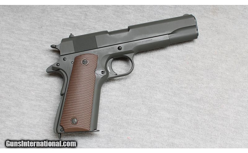 Description: Appears as new, with one mag and box. Value priced, Colt 1911 style .45 caliber semi auto pistol. A good choice for home defense or for military reenactors. .45 Auto SOLD Chambers: Semi auto Metal Condition: As new Wood Condition: Grips are as new Bore Condition: Bright Barrels: 5 Triggers: Single action Butt Pad: Factory grips Sights: Iron sights Item Location: La Vista, NE |