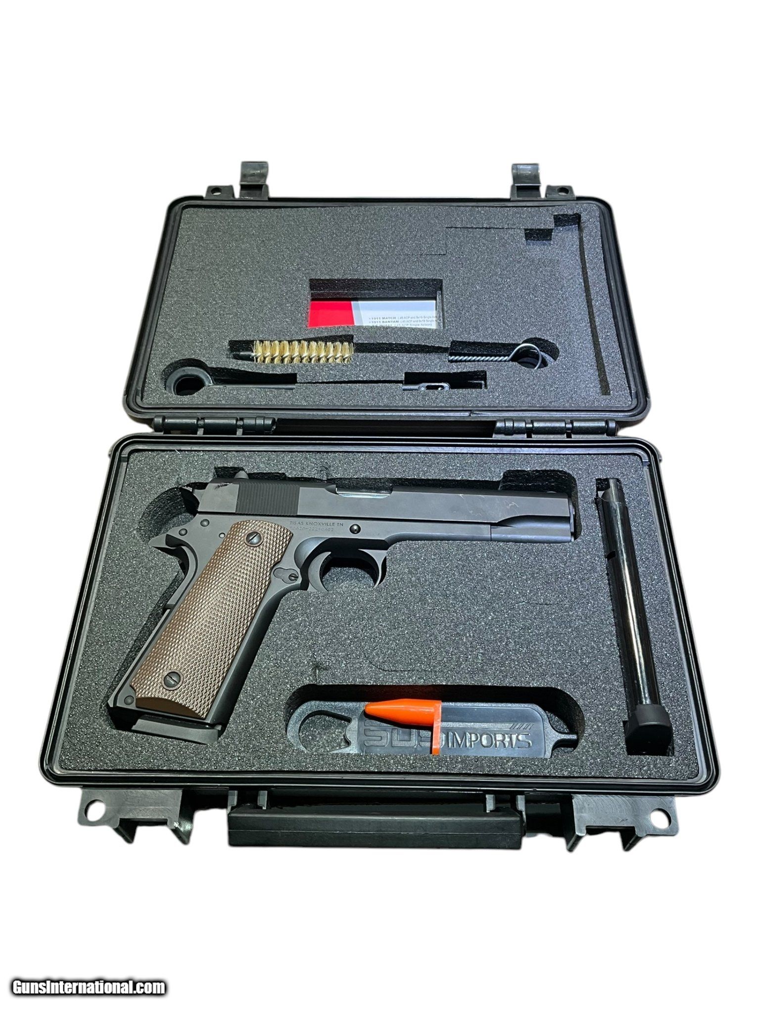 Description: Guns Listing ID: 494384 This firearm comes with (2) two magazines and a case. Cleaning kit and papers. See photos for details. SOLD Manufacturer: TISAS Model: 1911 A1 SERVICE SPECIAL Caliber Info: .45 ACP Condition: Used - Non-Certified Barrels: 5 BARREL Finish: black matte |