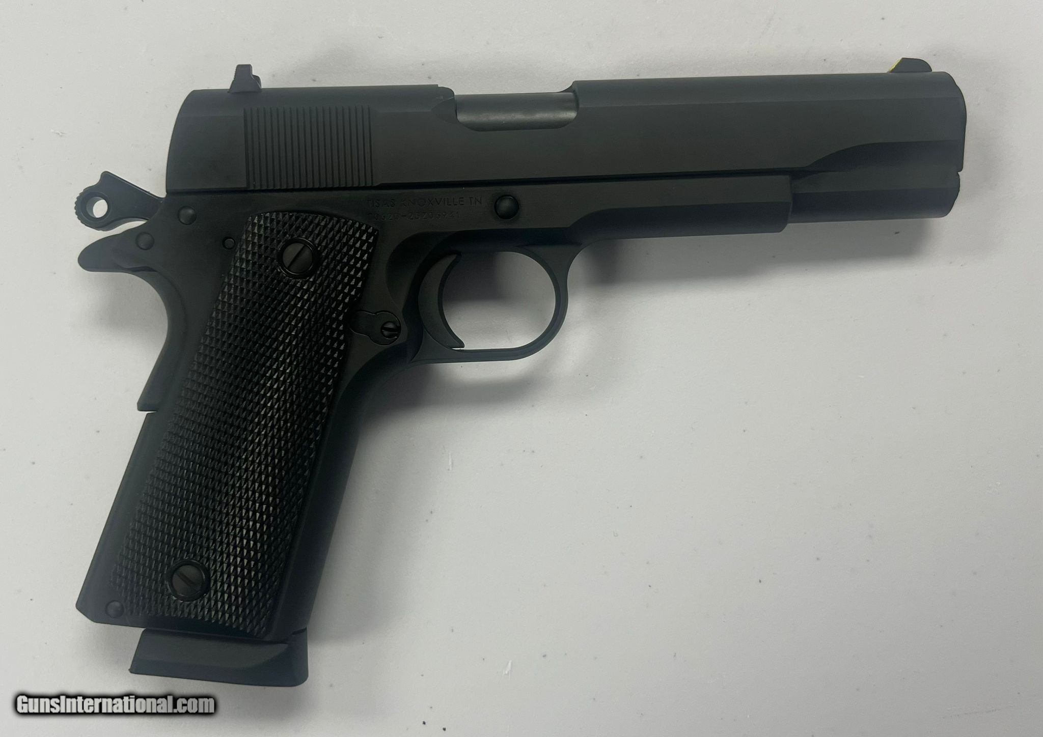 Description: Guns Listing ID: 582279 No box. Comes with 1 8rd magazine. A full-size, service-style 1911 built by TISAS (TISAS) that blends classic 1911 ergonomics with modern manufacturing and duty-oriented features. Chambered in .45 ACP with a 5.00\" barrel and an 8-round single-stack magazine, the Service Special is aimed at shooters who want the traditional single-action 1911 experience for range use, home defense, or service-style carry. Gun looks to be in very good condition with little to no ware. See photos for details! SOLD Manufacturer: TISAS Model: 1911 A1 SERVICE SPECIAL Caliber Info: .45 ACP Condition: Used - Non-Certified Barrels: 5" BARREL Action: SEMI AUTOMATIC Finish: black |