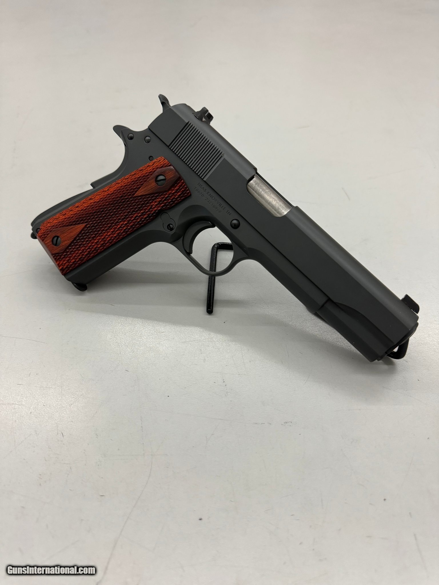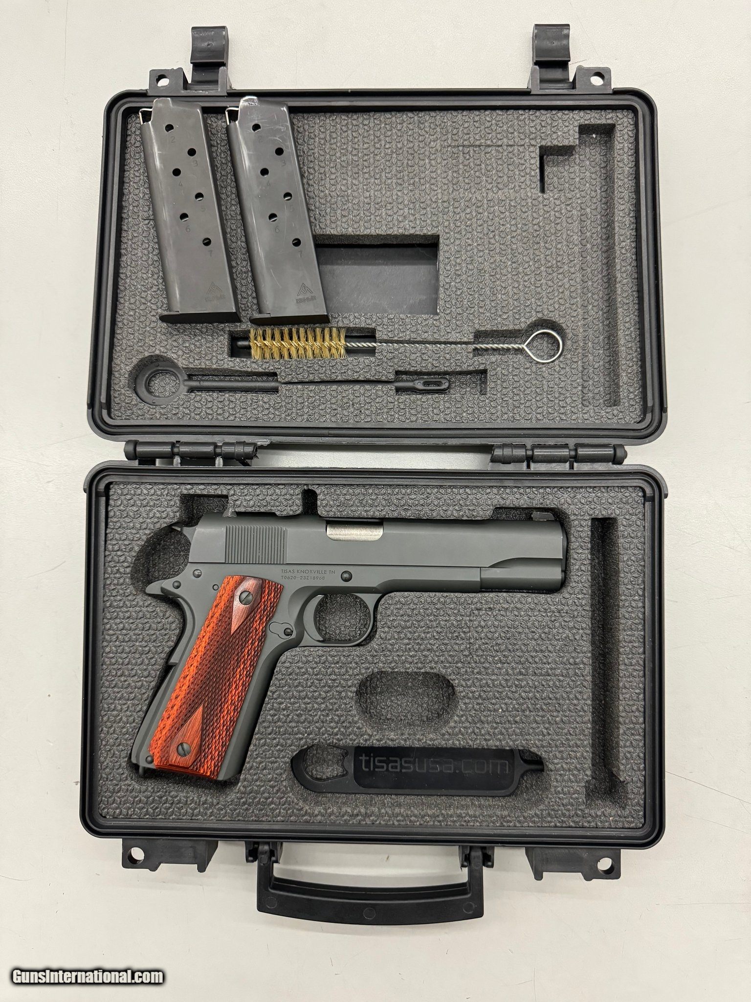 Description: Guns Listing ID: 1389092 This 1911 comes with its original case and 2 mags. SOLD Manufacturer: TISAS Model: 1911 A1 US ARMY Caliber Info: .45 ACP Condition: Used - Non-Certified Barrels: 5 BARREL Finish: STEEL/WOOD GRIPS |