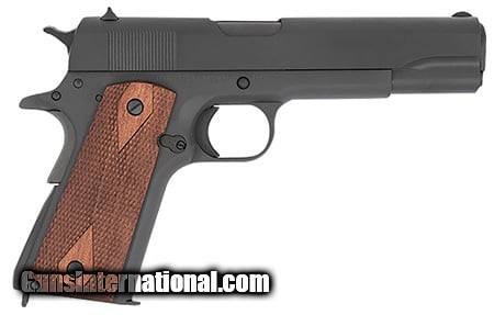 Description: Guns Listing ID: 368561 Tisas 1911 A1 US Army WWII 9mm Luger 7+1 5\" Black Steel Barrel Manganese Phosphate Coated Serrated Carbon Steel Slide & Frame w/Beavertail An accurate reproduction of WWII issued 1911, updated markings, Manganese Phosphate finish, Reprofiled Ejection Port and Type E Hammer. Includes two magazines, cleaning kit and hard case, SOLD Manufacturer: TISAS Model: 1911 A1 US ARMY WWII Caliber Info: 9MM LUGER (9X19 PARA) Condition: new Barrels: 5" BARREL Action: SEMI AUTOMATIC Finish: BLACK |