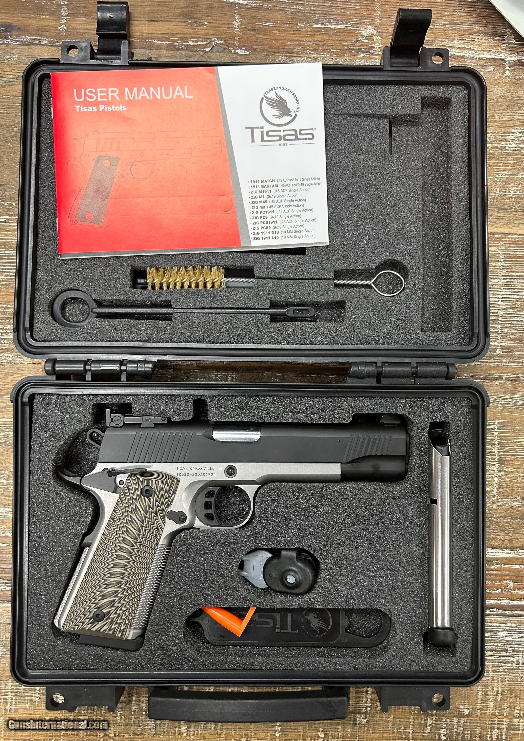 Description: Guns Listing ID: 985547 Item Ships with accessories as Pictured SOLD Manufacturer: TISAS Model: 1911 D10 Caliber Info: 10MM Condition: Used - Non-Certified Barrels: 5 BARREL Finish: TWO TONE BLACK AND STAINLESS |