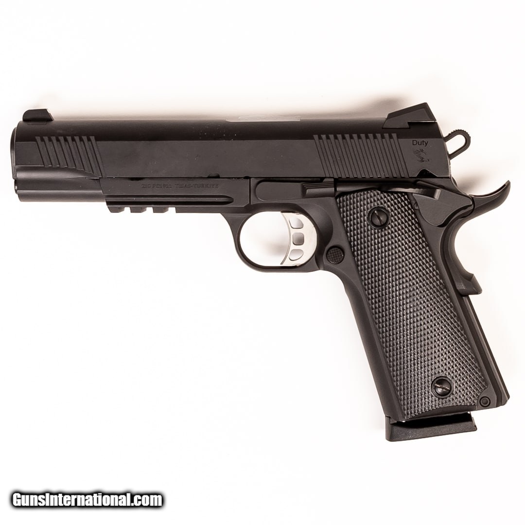 Description: Guns Listing ID: 451355 For sale is a Tisas 1911 Duty B. It‚‚s a modernized and upgraded version of the venerable 1911, offered at an affordable price. This model is in excellent condition and comes with the original box, manual, one 8-round magazine, and tools SOLD Manufacturer: TISAS Model: 1911 DUTY B Caliber Info: .45 ACP Condition: Used - Certified Barrels: 5 BARREL Finish: BLACK |