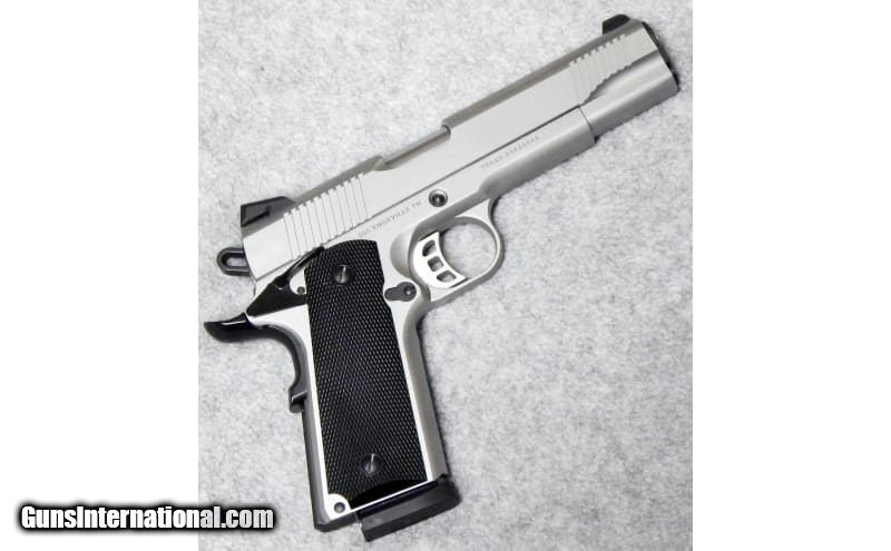Description: Tisas ~ 1911 Duty SS45 ~ Chambered in .45 Auto. Is a full size government style 1911 pattern single action semi-auto firearm. Features a 5" barrel paired with iron sights. Firearm has an ambidextrous thumb safety, and an overall stainless steel finish complimented with black polymer grips. Comes with original box along with documentation, and a single 8 + 1 capacity magazine. .45 Auto SOLD Chambers: .45 Auto. Metal Condition: Very good condition. Bore Condition: Good condition. Triggers: 5.75 pounds. Weight: 2 pounds Sights: Iron sights. Item Location: Acworth, GA |