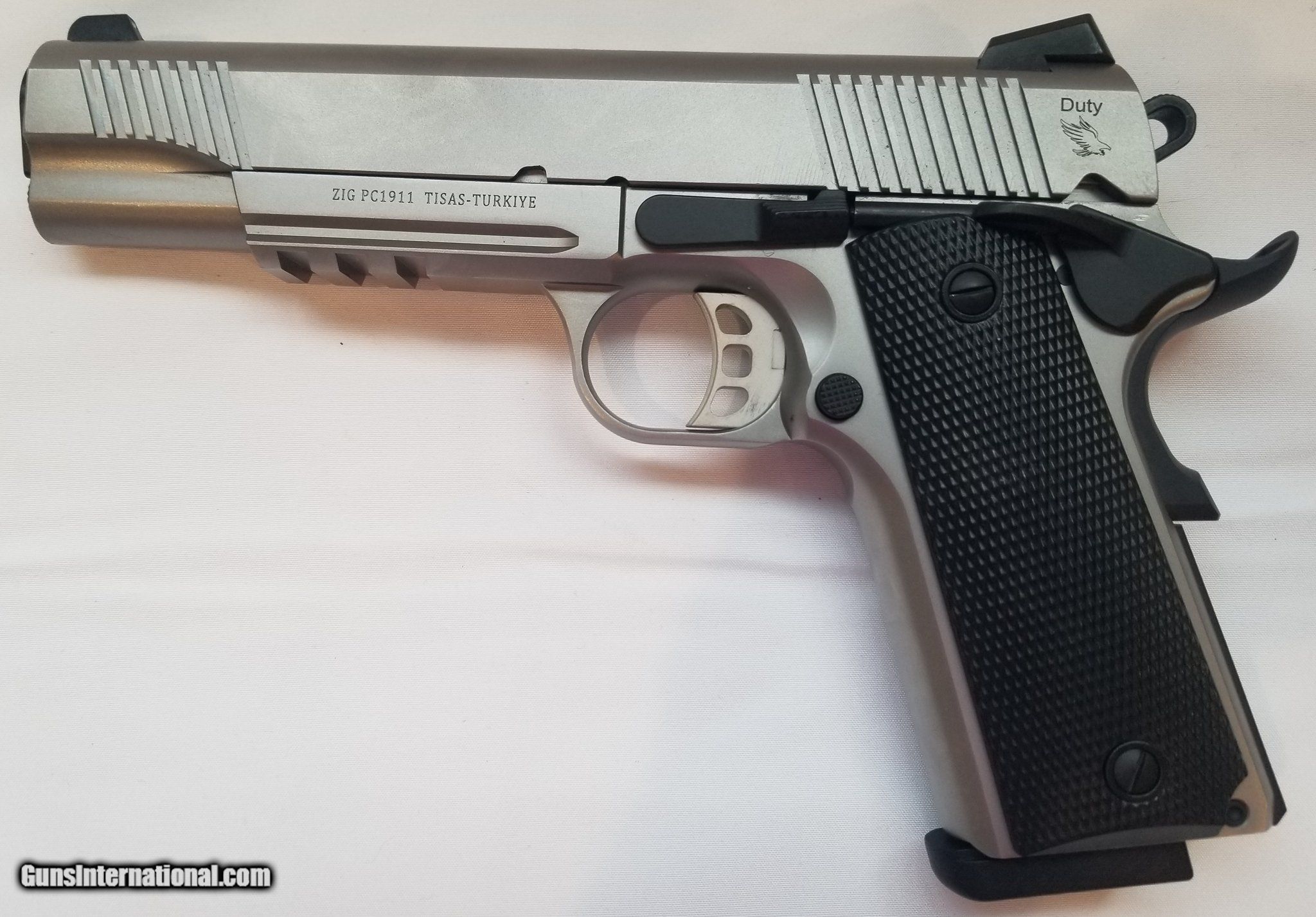 Description: Guns Listing ID: 1282302 Tisas 1911 Duty SS45R, 2 8-round mags, original box. SOLD Manufacturer: TISAS Model: 1911 DUTY SS45R Caliber Info: .45 ACP Condition: Used - Non-Certified Barrels: 5 BARREL Finish: STAINLESS |