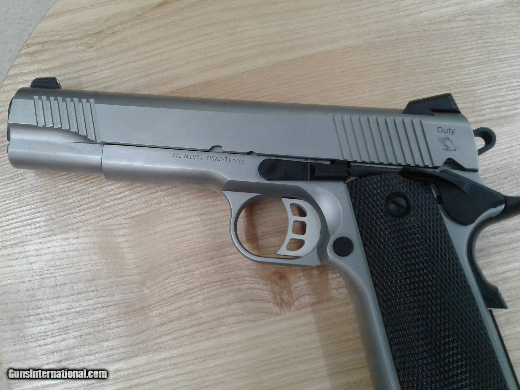 Description: Guns Listing ID: 582645 Tisas 1911 duty 45 acp excellent condition very nice for any collection or great for everyday carry. SOLD Manufacturer: TISAS Model: 1911 DUTY Caliber Info: 45 ACP Condition: Used - Non-Certified Barrels: 5 BARREL Finish: STAINLESS |