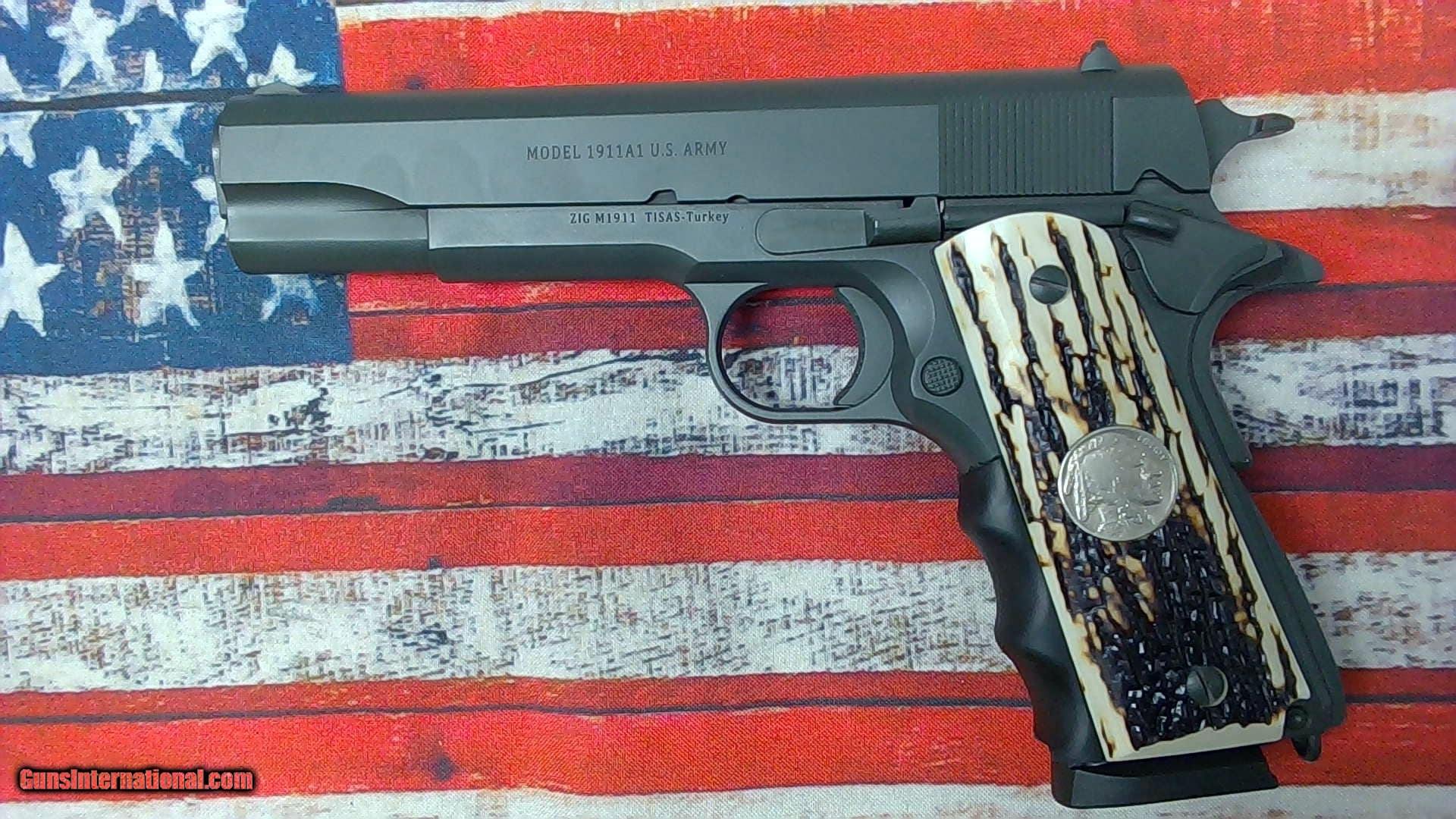 Description: Guns Listing ID: 898022 This is a beautiful 1911! It‚‚s gun metal grey finish with the upgraded Stag style grips is the perfect combination. The 1911 A1 US Army is a re-production of the US Military‚‚s service pistol in 45ACP. It features a hammer forged barrel, durable military finish. and includes one 8 round (MEC-GAR) magazine. Brand: SDS Imports Category: Pistols Caliber: 45 ACP Model: 1911 A1 Capacity: 8 Finish: Parkerized Action: Semi-Automatic Frame/Material: Ste SOLD Manufacturer: TISAS Model: 1911A1 u.s. army Caliber Info: .45 ACP Condition: Used - Non-Certified Barrels: 5 BARREL Finish: TUNGSTEN |