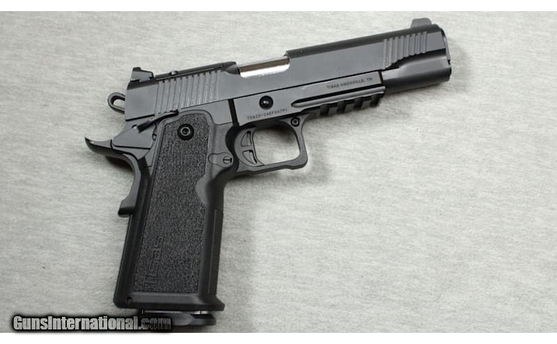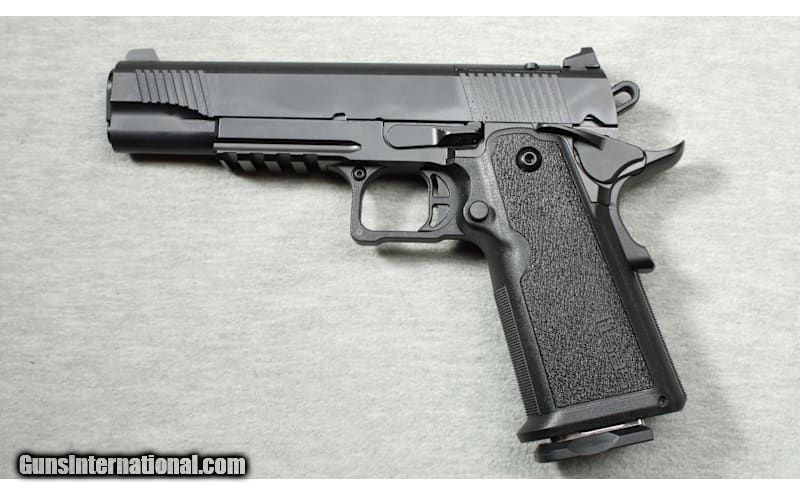 Description: Excellent condition, light wear and handling marks. Comes with two 17rd mags and hard case. Full size 9mm 2011 type pistol, 5" barrel, blued finish, single action trigger, lightweight hammer, front and rear slide serrations, extended ambi safety levers & grip safety, checkered front strap & main spring housing, and textured grip surfaces. 9mm Luger SOLD Chambers: Semi auto Metal Condition: Excellent Bore Condition: Bright Barrels: 5 Triggers: Single action Fore End: Rail for accessory mounting Butt Pad: Polymer grip frame Sights: "Notch rear, blade front sights, and optics ready slide Item Location: La Vista, NE |