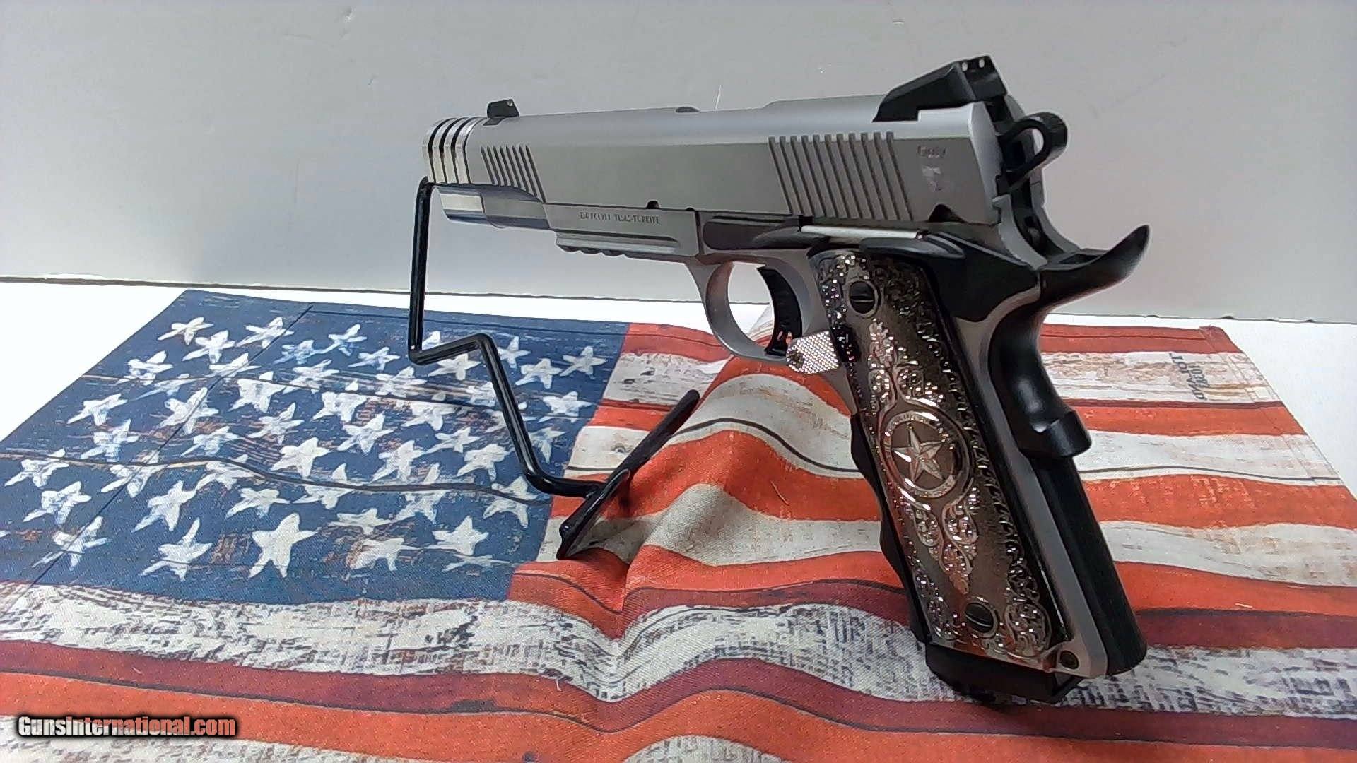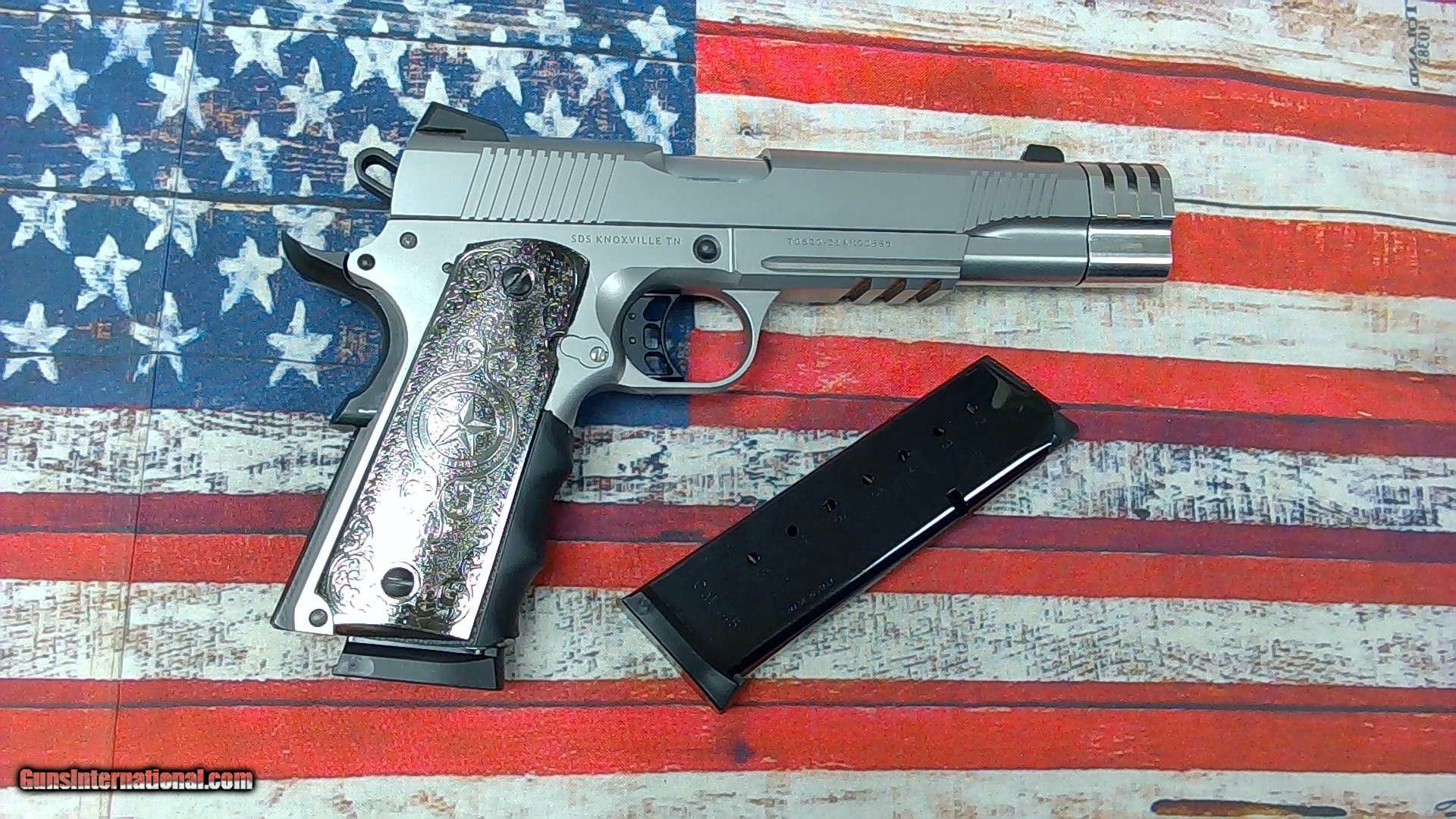 Description: Guns Listing ID: 478440 Pre-owned in very good condition. This stainless Tisas 1911 chambered in .45acp has been upgraded with a compensator, skeletonized trigger, Wilson Combat mag release, WC buffer tube, WC springs and silver plate Republic of Texas grips. Someone has put some love into this, it is beautiful. Constructed from precise engineering and SDS economic craftsmanship, this SDS Tisas Duty Full Size 1911 is a gun you can count on for years to come. Chambered in .45 ACP, this 1911 features a 5 inch barrel, Novak 3-dot sights, ambidextrous thumb safety, stainless finish, a picatinny accessory rail, and two 8 round magazines. These photos represent the exact firearm for sale. As with many used firearms, this item may contain scratches and/or signs of wear. This is not always the case but should not be unexpected. No original box or other accessories. SOLD Manufacturer: TISAS Model: PC1911 Duty Condition: Used - Non-Certified Barrels: 5 Gauge Info: .45 ACP Finish: BRUSHED STAINLESS |