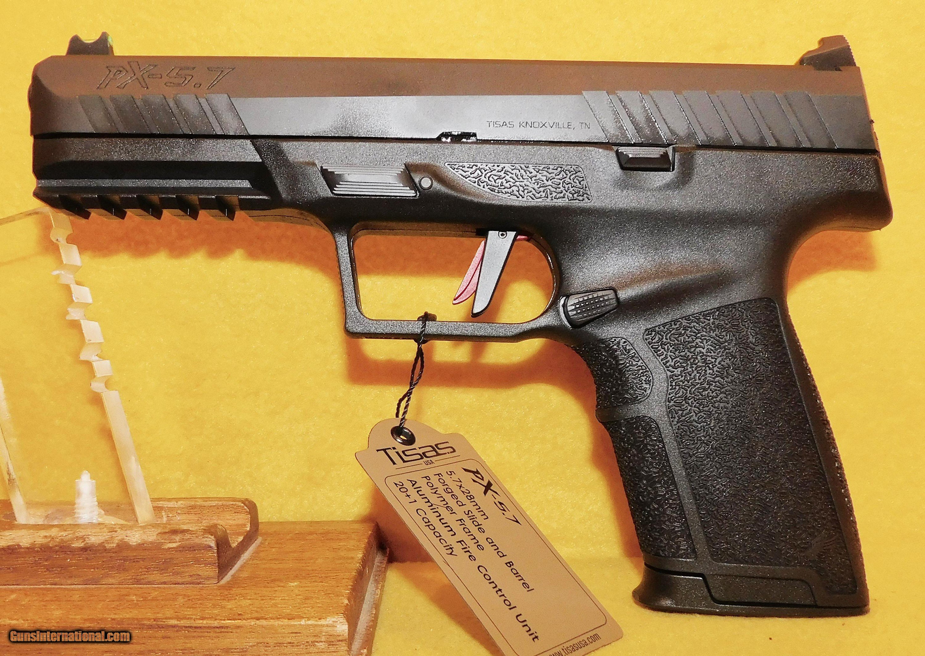 Description: TISAS PX-5.7 IN 5.7X28 CAL., WITH 4 .75" BARREL. COLOR BLACK. CONDITION NEW IN BOX. SERIAL NUMBER T062024DJ01310. TISAS MODEL PX-5.7 IN 5.7X28 CALIBER, COMES WITH TWO FACTORY MAGAZINES, HARED CASE WITH PAPERS, NEW IN BOX OVERALL CONDITION, OUR STOCK # D6512 SOLD |