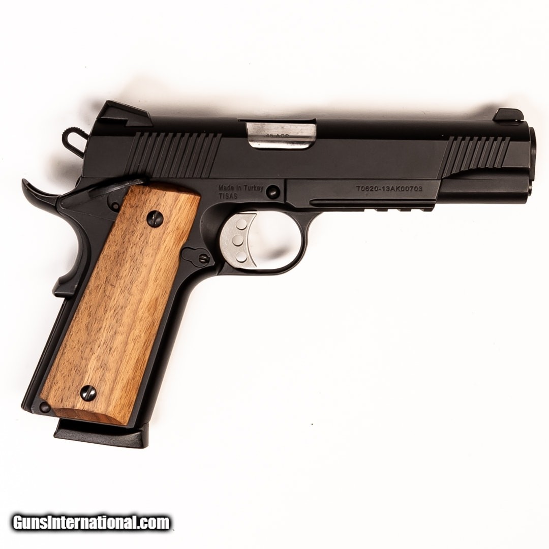 Description: Guns Listing ID: 545030 For sale is this Tisas Zig PC 1911, a single-action 1911 handgun with a wallet-friendly price tag. It offers steel construction alongside checkered grips and a three-hole trigger. Purchase includes the original box and three 8-round magazines. SOLD Manufacturer: TISAS Model: ZIGT PC 1911 Caliber Info: .45 ACP Condition: Used - Certified Barrels: 5 BARREL Finish: BLACK |