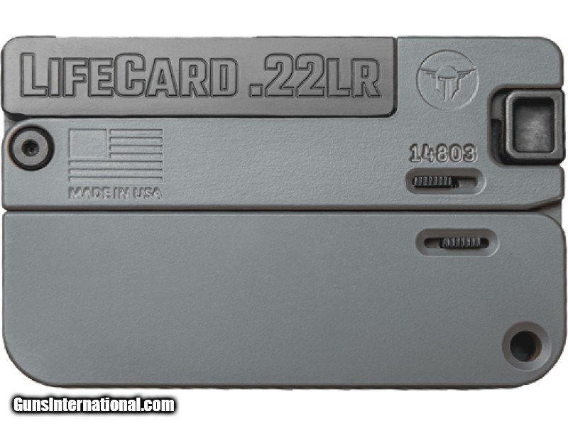 Description: Guns Listing ID: 202589 The new standard for Discreet Carry a folding single-shot .22LR pistol that‚s no bigger than a stack of credit cards. At .5 inches thin and weighing less than 7 ounces LifeCard will be the last gun you‚ll leave behind. Discreet shape sleek no-snag design in Sniper Grey Size of a credit card when folded - 2rd Storage Compartment Full-size handle for easy use when unfolded Completely ambidextrous Built-in safety features Manufacturer: TRAILBLAZER FIREARMS Model: LIFE CARD .22 Caliber Info: .22 LR Condition: new Barrels: 2.5" BARREL Action: SINGLE SHOT Finish: SNIPER GRAY Weight: .3 lbs. Price: $350.99 Contact Seller |