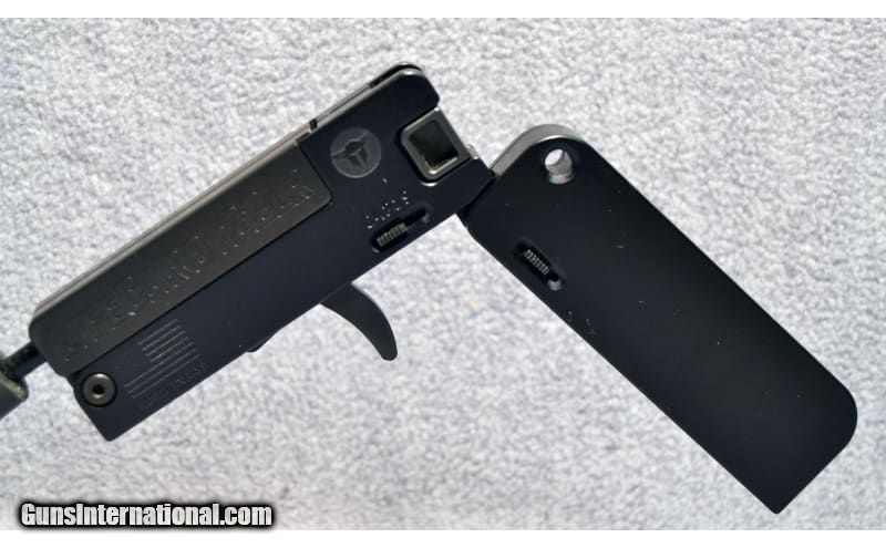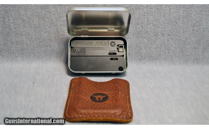 Description: This Trailblazer Lifecard is a unique pistol, chambered in .22 LR. This gun folds to approximately the size of a credit card making it easily concealable. There is a storage compartment built into the handle to hold additional rounds. This model comes complete with metal case and leather "holster" as shown. .22 Long Rifle SOLD Metal Condition: Very good Bore Condition: Very good Barrels: 2.375 Weight: .4 lbs Sights: None Item Location: Cheektowaga, NY |