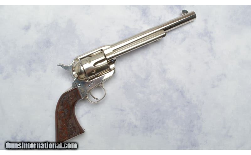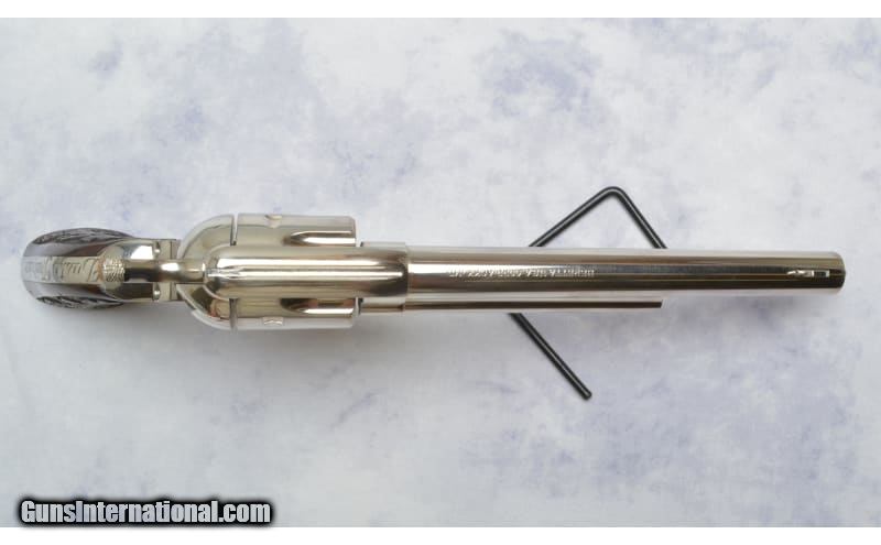 Description: The Uberti Stampede Dusty Trailrider is a remake of Single Action Army revolver that features a polished Nickle finish and is chambered in .44-40. Features Scroll Engraved Rosewood Grips. Uberti is known for making quality reproductions of historical firearms. .44-40 Winchester SOLD Chambers: .44-40 Metal Condition: Excellent Wood Condition: Excellent Bore Condition: Excellent Barrels: 7.5 Sights: Fixed Integral Item Location: Green Bay |