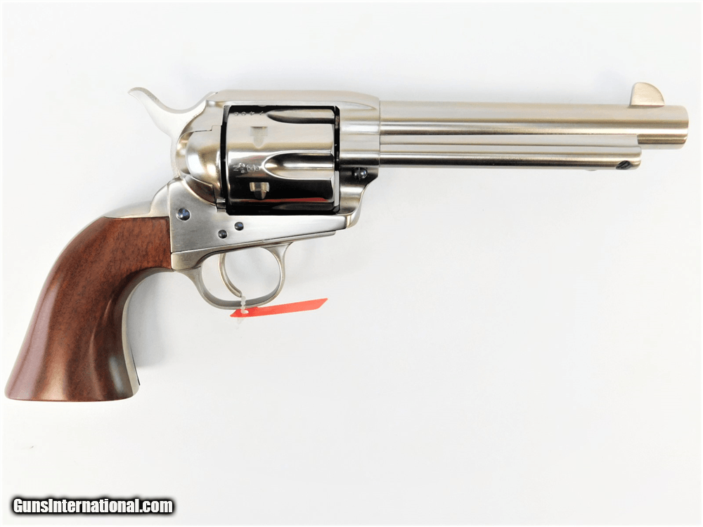 Description: Manufacturer: Taylor's & Co. / Uberti Model: 1873 Cattleman Nickel SKU: 555122 Action: Single Action Caliber: .45 Colt Cylinder: 6-Shot Frame: New Model Forged Finish: Nickel Plated with Charcoal Blue Screws Barrel Length: 5.5" Overall Length: 11.10" Sights: Fixed Front Blade, Rear Frame Notch Grips: Walnut Weight: 2.5 lbs All items are factory new in box unless otherwise stated. Based on the information available to us, the above specifications describe this item to the best of our knowledge. For further information, please contact or visit the manufacturer's . SOLD |
