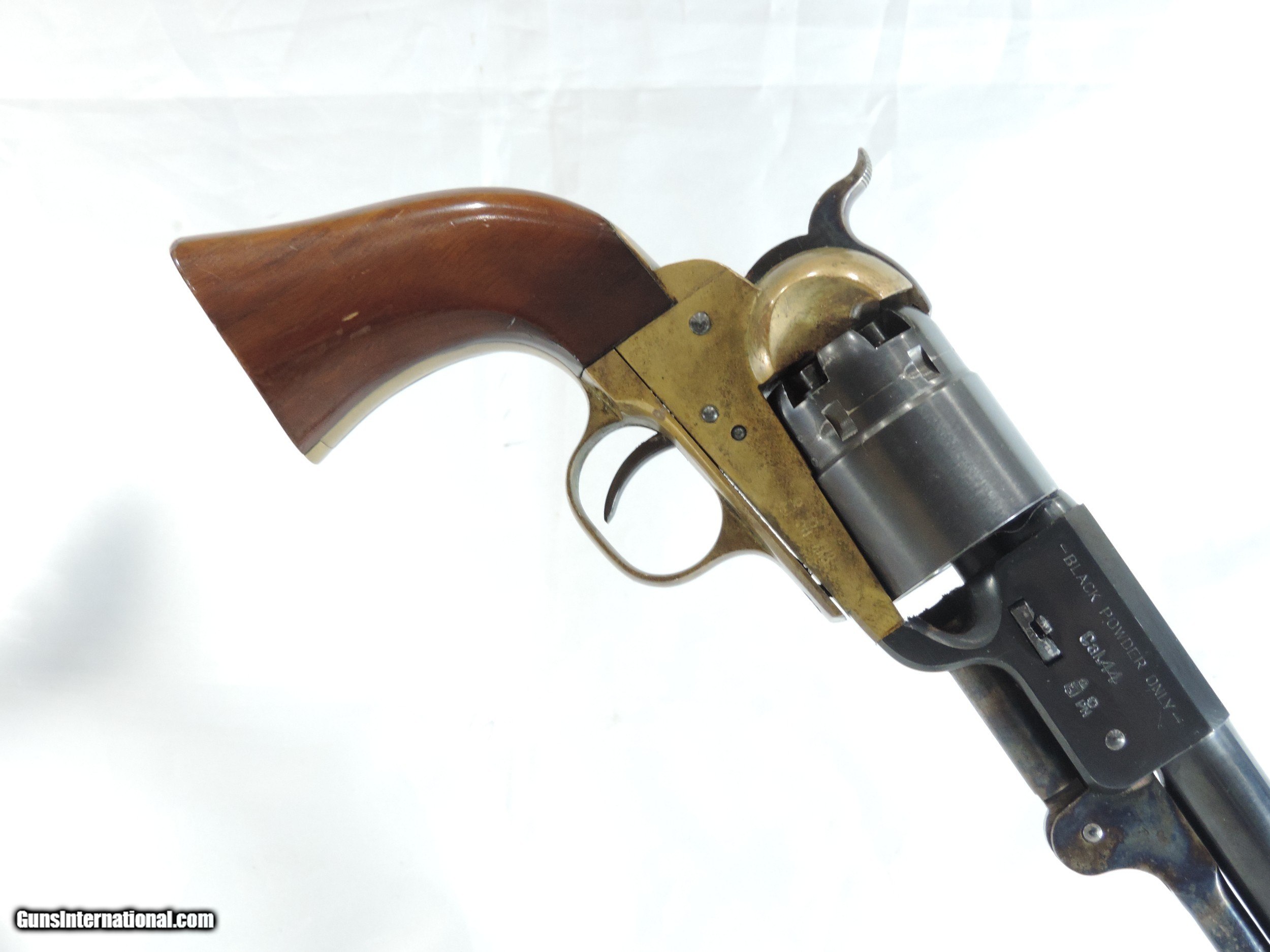 Description: Inv. 6908 Uberti Colt 1851 Navy, Cal. .44, Ser. 20032, A minty unfired wall hanger from an estate purchase. Other than the brass frame has a gained lovely aged patina the gun is exactly as it was imported over 25 years ago. It is flat out pristine Only ......SHIPPED...$275 ... To purchase this firearm or if you want to request more information contact us at: Email ckguns[at]ymail[dot]com Phone 201-512-0002 Cell 201-575-6838 FAX 201-215-4759 We accept most major credit cards. Prices shown are Discounted 3% for Cash or Check. The buyer must be familiar with all the laws governing the purchase and the ownership of firearms in their own city and state. The Yankee Armorer, Inc is not responsible for any failure to comply with or observe these laws. The Yankee Armorer, Inc will only ship after full payment and receipt of all required documents. Shipping: Add $35.00 for handguns, $45.00 for long guns. New Jersey buyers are subject to a 7% sales tax. The Yankee Armorer, Inc offers a 3 day inspection period with full refund upon return of intact firearm and in the original condition. The Yankee Armorer, Inc offers a no interest lay away program - 25% down; 25% in 30 days; 25% in 60 days; and full payment in 90 days. Any violation of this policy is subject to restocking and forfeiture of all payments. Any variation from this policy must be agreed to in advance. Unshipped Cancelled sales are subject to a 20% restocking fee. Be advised that all firearms sold by The Yankee Armorer, Inc. or the Gun Exchange, LLC (SELLER) are sold as collector’s items. They have not been fired or tested for safety and must be examined by a license gunsmith prior to use. By purchasing any item from the (SELLER), you are agreeing to hold the (SELLER) free from any damages or lawsuits of any nature. Any item left for transfer or storage will be charged to $25.00 per month, per item from the day of its receipt. Any variation from this policy must be agreed to in advance. Store hours 10:00 am to 5:00 pm Tuesday -Saturday. It's always best to call for appointment. Store 201-512-0002, cell 201-575-6838. SOLD Handgun Caliber: .44 |