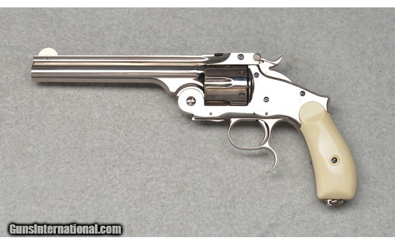 Description: Ubert Russian No. 3 Top Break repoduction revolver in excellent condition. This revolver features the classic Russian grip, nickle finish, and fire blue screws. Only minor handling marks and includes the box. .45 Colt SOLD Metal Condition: Excellent Wood Condition: Excellent Bore Condition: Clean Barrels: 6 1/2 Weight: 2 lb 12 oz Item Location: Fort Worth, TX |