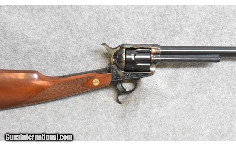 Description: Uberti Stampede .45 Long Colt .45 Colt SOLD Metal Condition: Excellent like new, color case harded receiver Wood Condition: Very good, a few scratches and dings Barrels: 17 inch blued barrel Triggers: Single grooved trigger Stock Dimensions: 13 1/2 inch LOP Butt Pad: Brass metal pad Sights: Fixed blade front sight Item Location: Kansas City, KS |