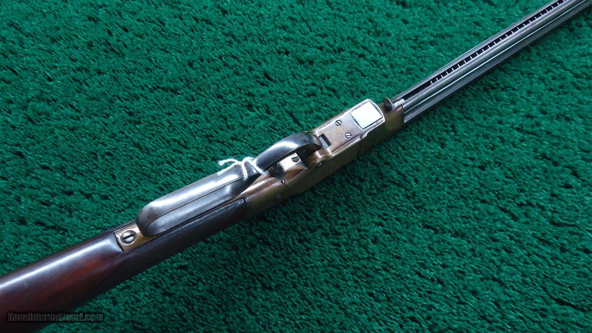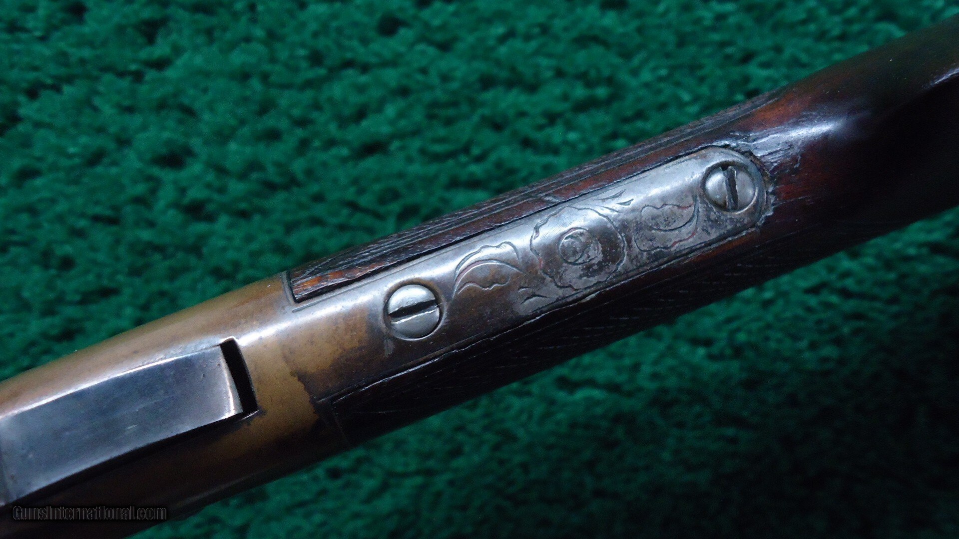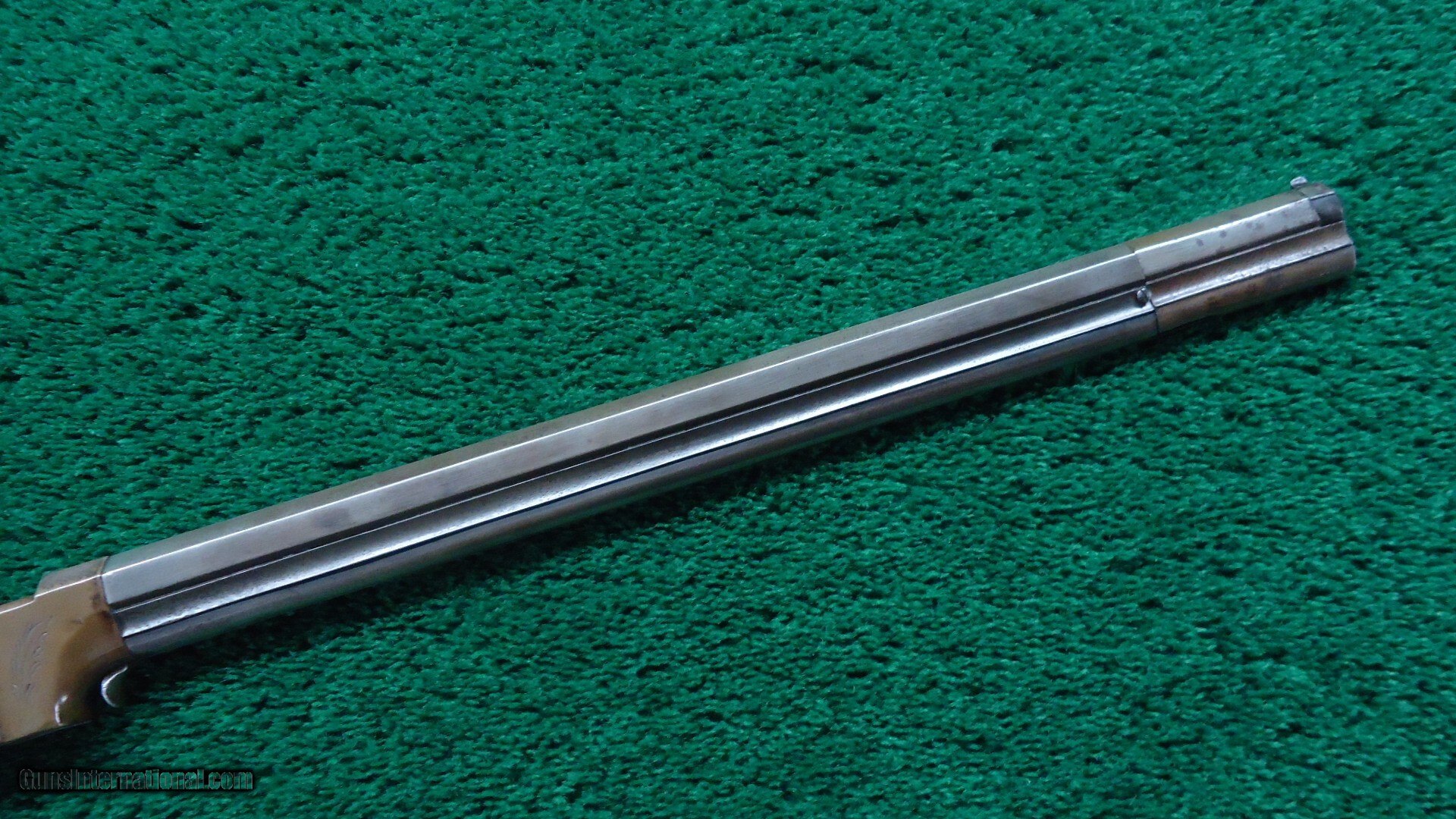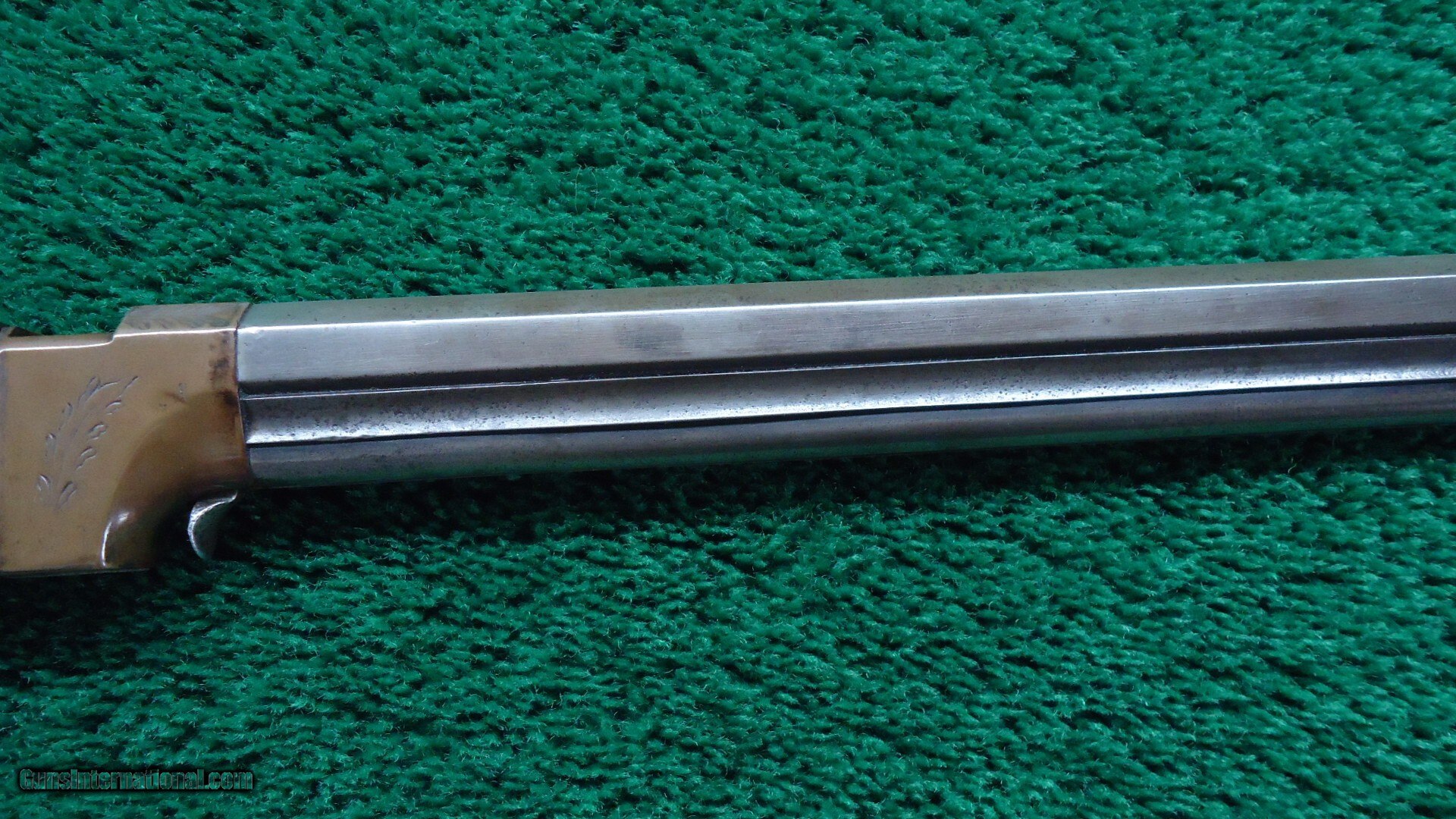 Description: 16-1/2 inch octagon barrel chambered in 41 caliber "Rocket Ball". This was self contained ammunition. Good shiny bore with good rifling and just a few scattered light pits. Sights include a small blade front and elevation adjustable notch rear. Barrel and integral full length magazine tube have been cleaned long ago and are gray patina with only a partial barrel patent marking discernible. Brass receiver is engraved and shows traces of tarnished silver plating with the balance having toned to a mustard patina. Varnished walnut stock has checkering in the wrist and some minor handling mars and a hairline crack coming off the lower tang. Brass crescent shaped buttplate also has some edge engraving and a mustard patina. About 1,000 of these carbines were manufactured in three different barrel lengths between 1857-1860. Leroy Merz Antique Firearms specializes in antique and vintage Winchesters and other fine American firearms. Since 1965 Mr. Merz has taken part in the world of firearms and has been a contributor to many well known reference books. We have hundreds of additional guns in every price range at our home online. Search for Merz Antiques in google. Antique: Yes Price: $24,750.00 Contact Seller |