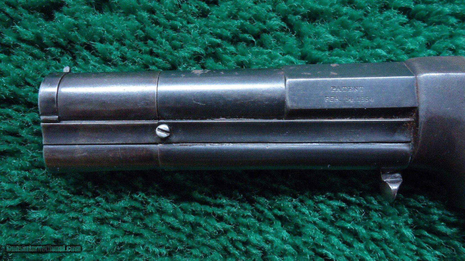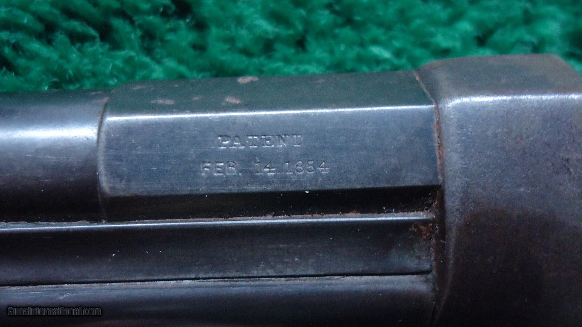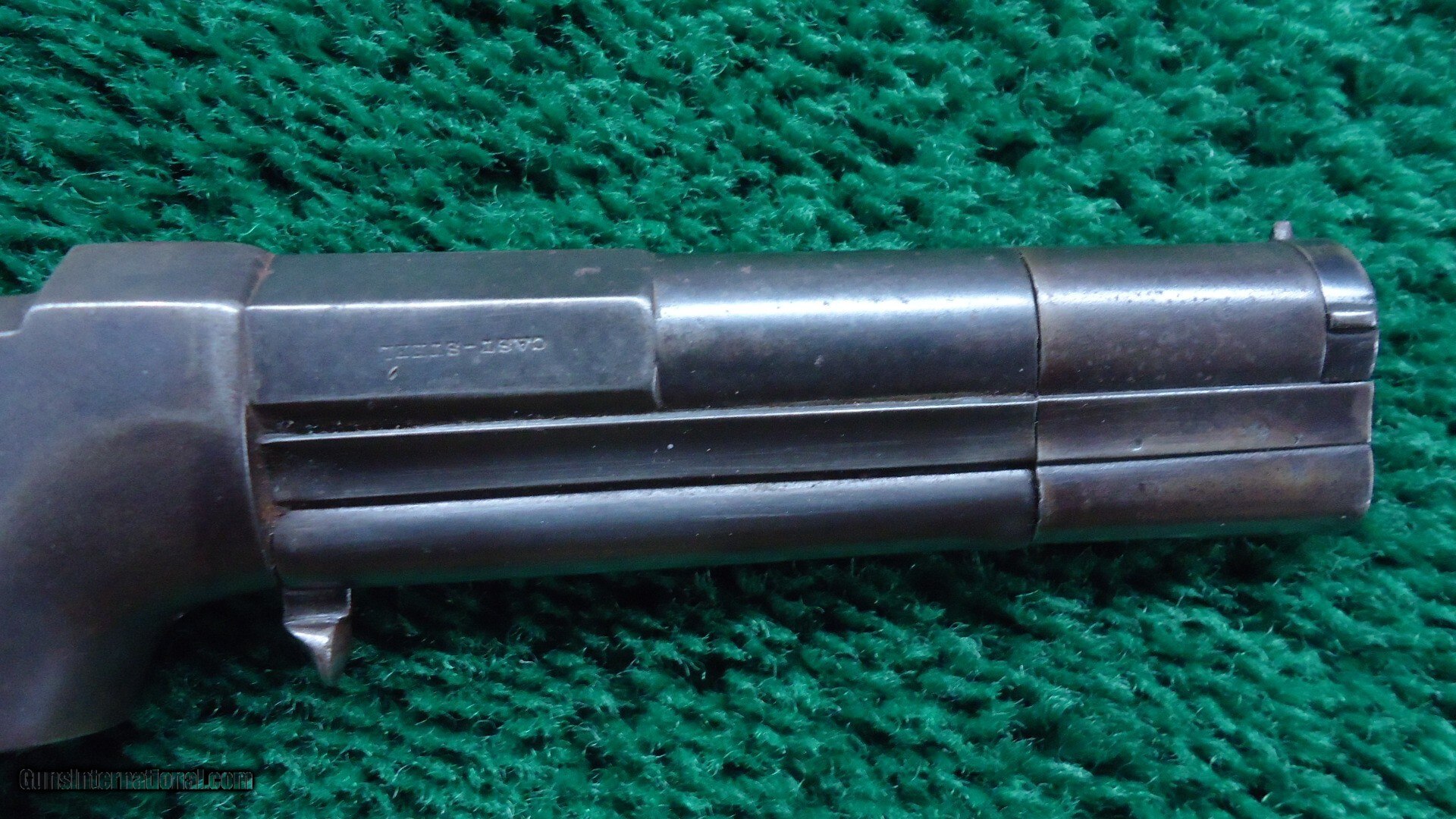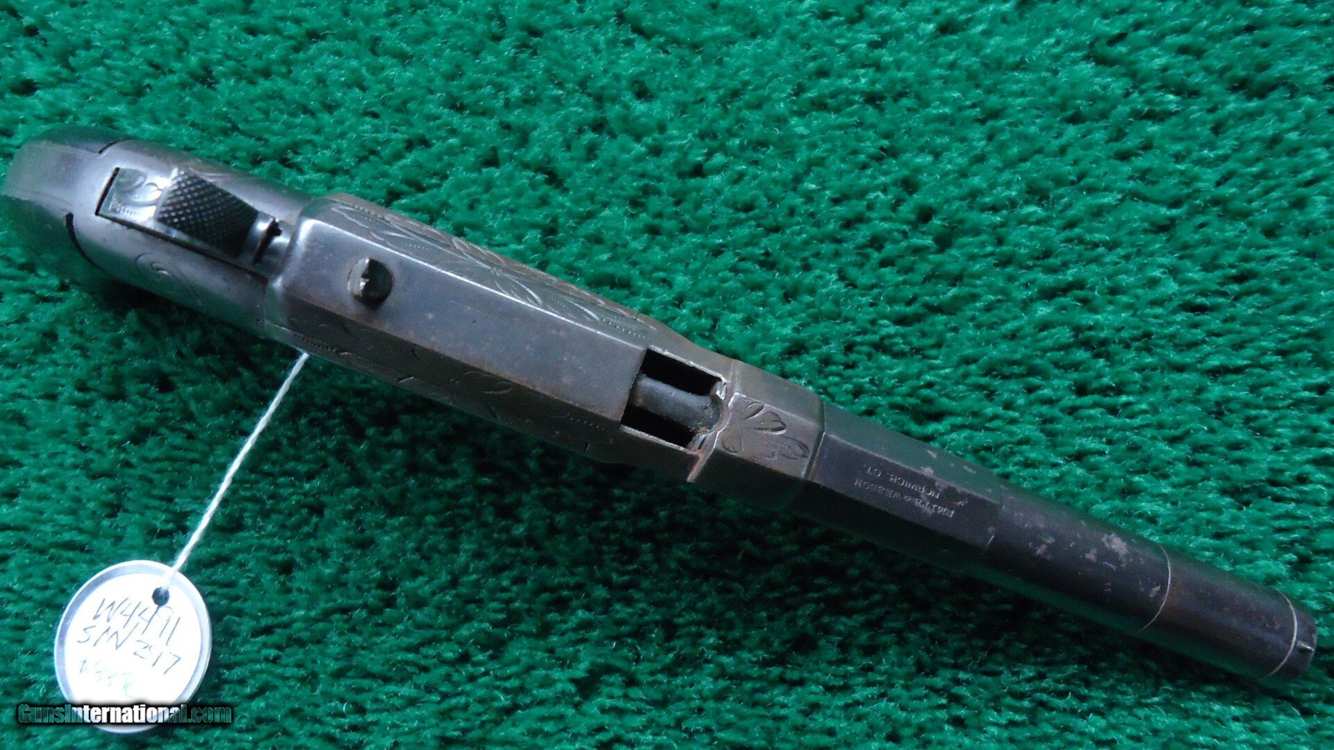 Description: Factory engraved early production serial number 297 small frame No. 1 Volcanic lever action pistol has an 4 inch part octagon barrel chambered in 36 caliber and has a very good shiny bore. These pistols fired the self contained "Rocket Ball". Features a nicely crowned muzzle face. The top of the barrel is stamped "SMITH & WESSON / NORWICH, CT" while one flat reads "PATENT / FEB 14,1854" and another reads " CAST-STEEL". Integral 6-shot magazine below the barrel. Sights include a post blade front and a fixed notch rear. Barrel and magazine tube assembly as well as the frame have traces of blue remaining with the balance a plum/brown patina. The blued iron frame has factory scroll engraving. Varnished Rosewood grips are numbered to the gun and fit good and have just some minor wear. Action functions properly. This Smith & Wesson Volcanic pistol was manufactured in 1855. Only about 1,200 of these 36 caliber small frame No. 1 Volcanic pistols were made between 1854-1855. This was the first Smith & Wesson branded firearm based on Daniel Wesson's 1854 patent. A rare and historic pistol that is important to S&W collectors and Winchester collectors alike. Leroy Merz Antique Firearms specializes in antique and vintage Winchesters and other fine American firearms. Since 1965 Mr. Merz has taken part in the world of firearms and has been a contributor to many well known reference books. We have hundreds of additional guns in every price range at our home online. Search for Merz Antiques in google. Antique: Yes Handgun Caliber: .31 Price: $8,850.00 Contact Seller |
