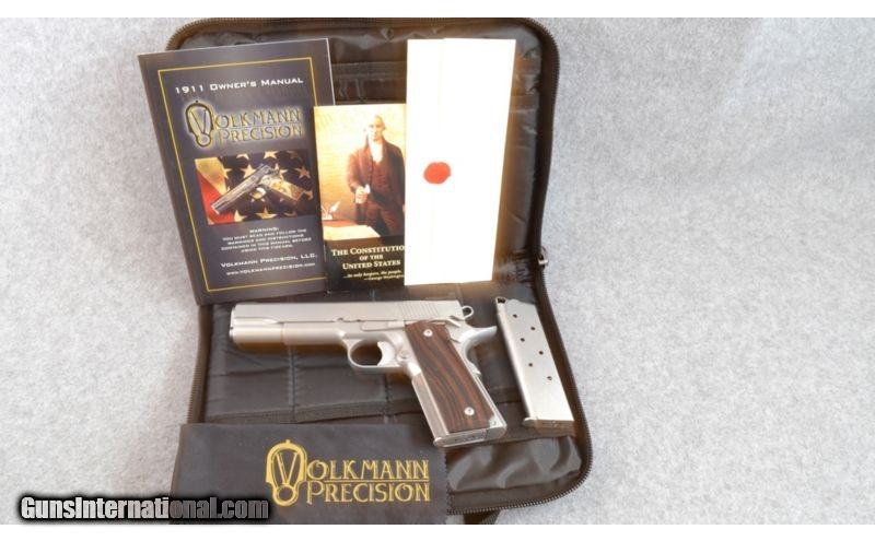 Description: Custom made firearm to amazing spec's. New in case. SOLD Caliber Info: .45 Auto. Metal Condition: Excellent. Wood Condition: Excellent. Bore Condition: Clear and clean. Barrels: 5 inches - stainless. Triggers: Standard Volkmann. Stock: Wood checked grips. Weight: 2 lbs. 8 oz Sights: Notch rear and blade front. Extras: Two mags and Bulldog case. New in case. Item Location: Lone Tree, CO |