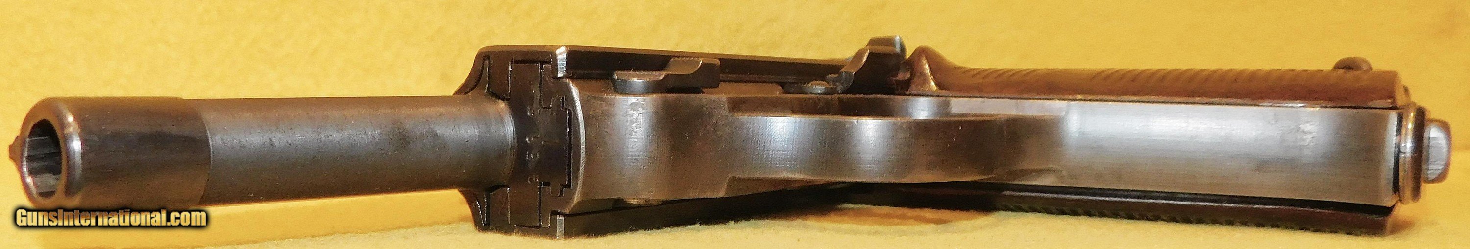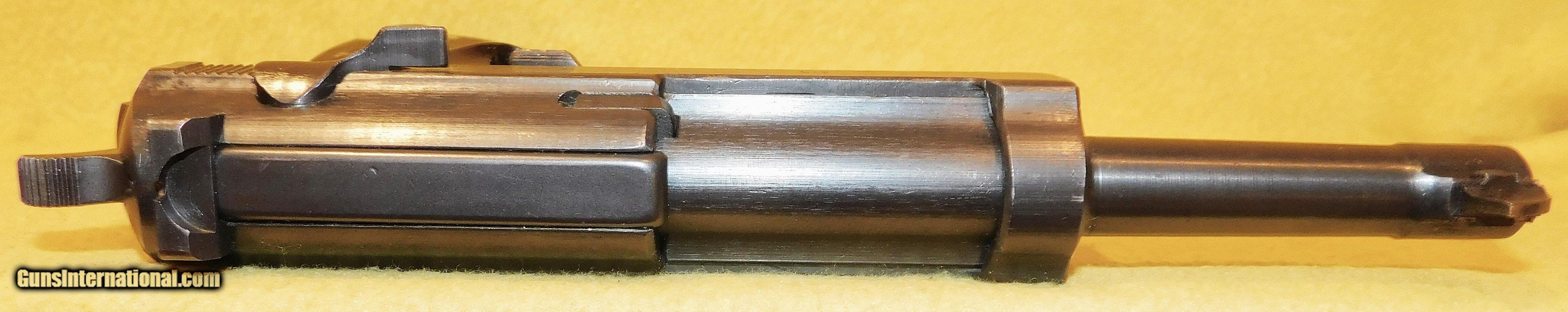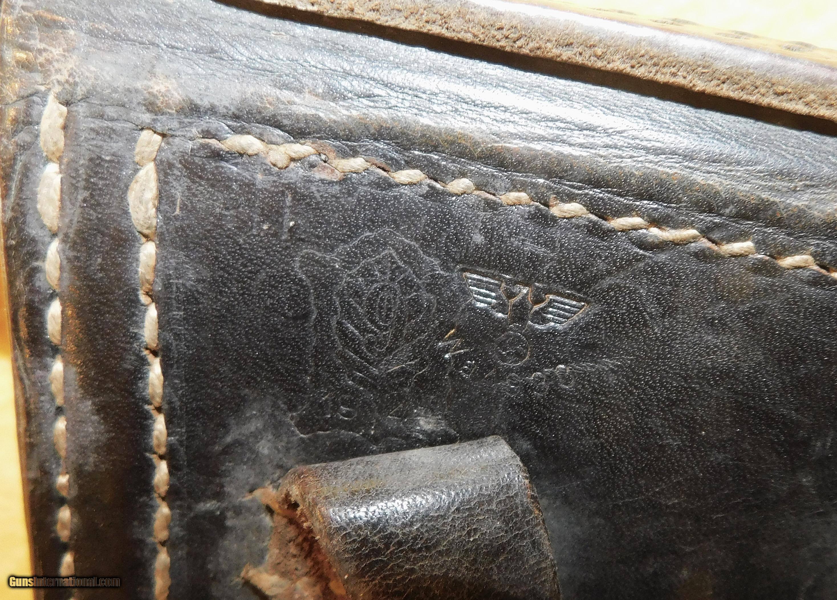 Description: SPREEWERK (WALTHER) CYQ P38 IN 9MM CAL., WITH 4 .75" BARREL. COLOR BLUE. CONDITION 96%+. SERIAL NUMBER 8790 n. SPREEWERK CYQ P38 n SERIES (WALTHER) IN 9MM CALIBER, MIRROR BORE, GRIPS EXCELLENT, AII PROPER WAFFEN MARKS, COMES WITH PROPER DATED CLAM SHELL HOLSTER (WAA 938 9 OAKLEAF ON A RUG 1943), TWO MAGAZINES (JVC MARKED) AND (WAFFEN 358 SERIAL MAG.), 96%+ OVERALL CONDITION, OUR STOCK # D8114 SOLD |